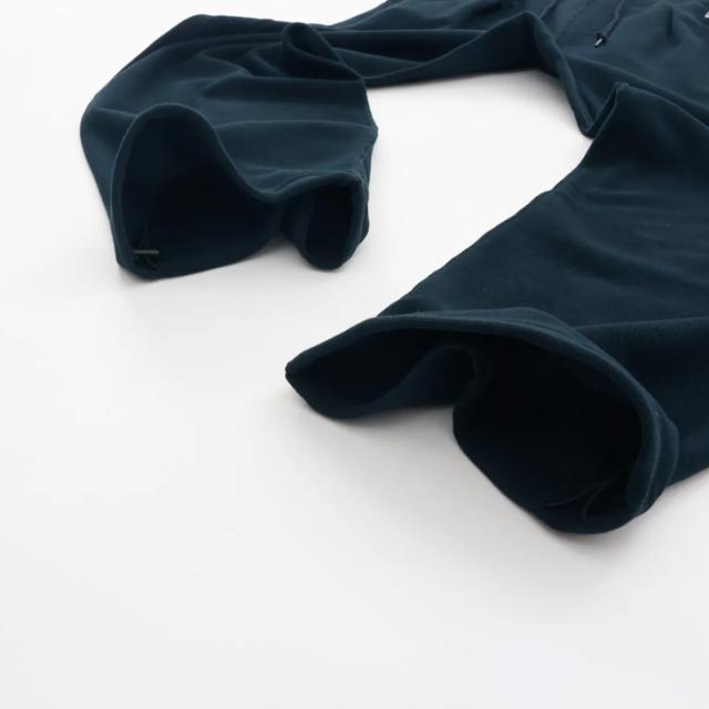 裾口のアジャスターコードを絞って、足元のシルエットを変えることもできます。