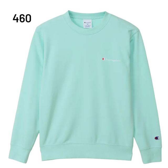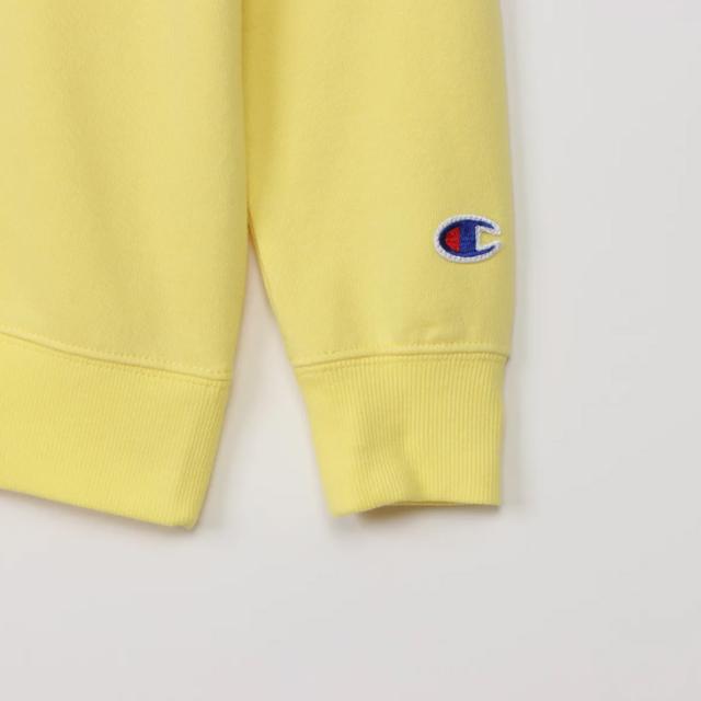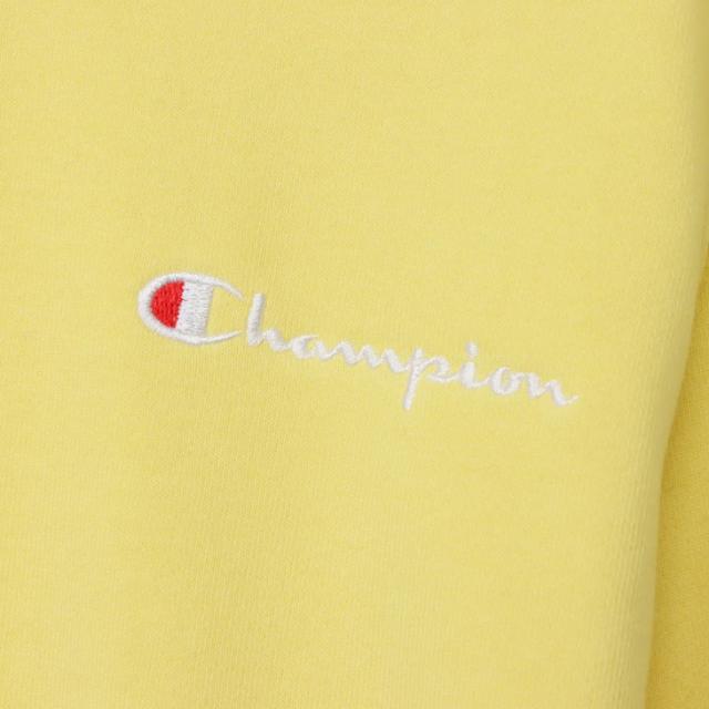 左胸にブランドカラーのChampionロゴ刺繍入り。シンプルなデザインで、