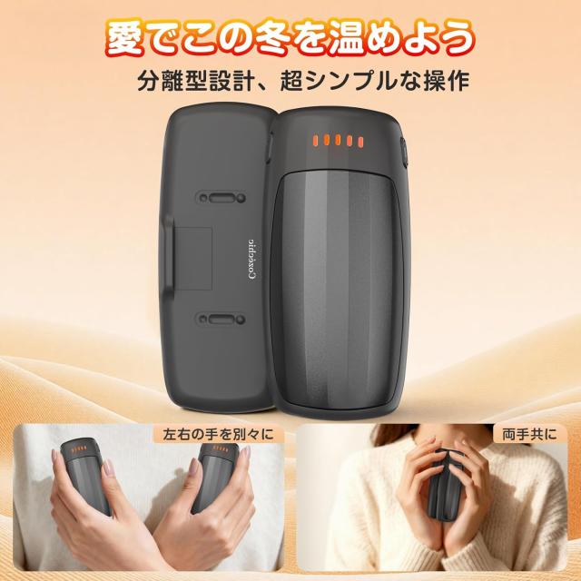 2個セット 充電式カイロ PSE認証済み 3秒急速暖熱/5段階温度調節 分離式設計 大容量6000mAh 長時間航続 USB-C急速充電 小型・軽量 両手使用可能 持ち運びやすい アウトドア