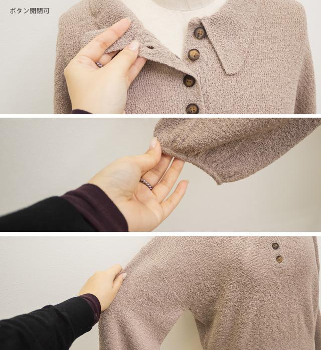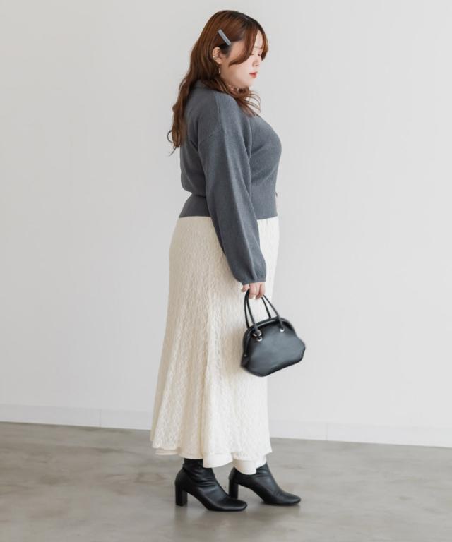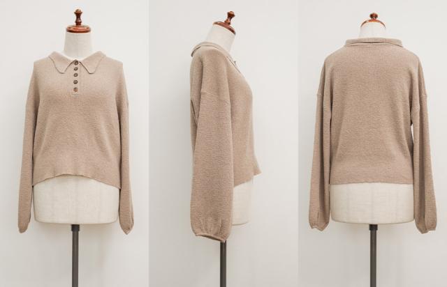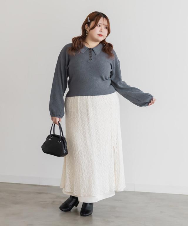 | 3Lサイズを着用して窮屈感のない楽な着心地でした。軽いニットで着やすく伸びもいいのでノンストレスです。襟付きのポロシャツのようなキレイめな雰囲気にもカジュアルにも合わせやすいです!ぽこぽこしたブークレニットで、ボディラインを拾いずらいのも嬉しいです♪コンパクトめなシルエットなのでアウターを重ねてもごわつかないのがうれしい。秋や春にも使える厚みなので長いシーズン着回しできそうです! |