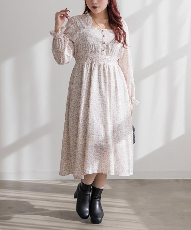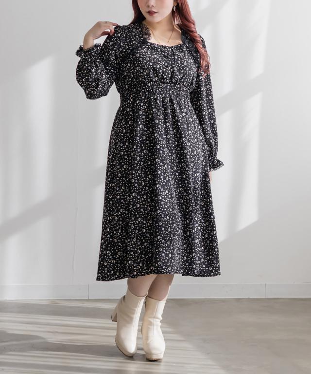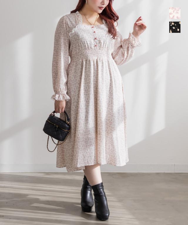 大きいサイズ/レディース/3L/4L/5L/ボレロドッキング花柄ワンピース