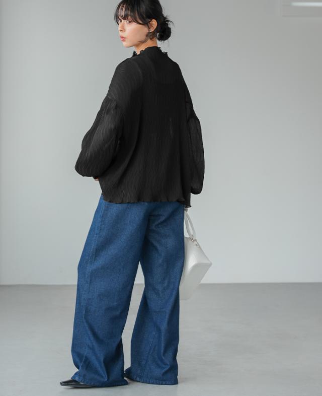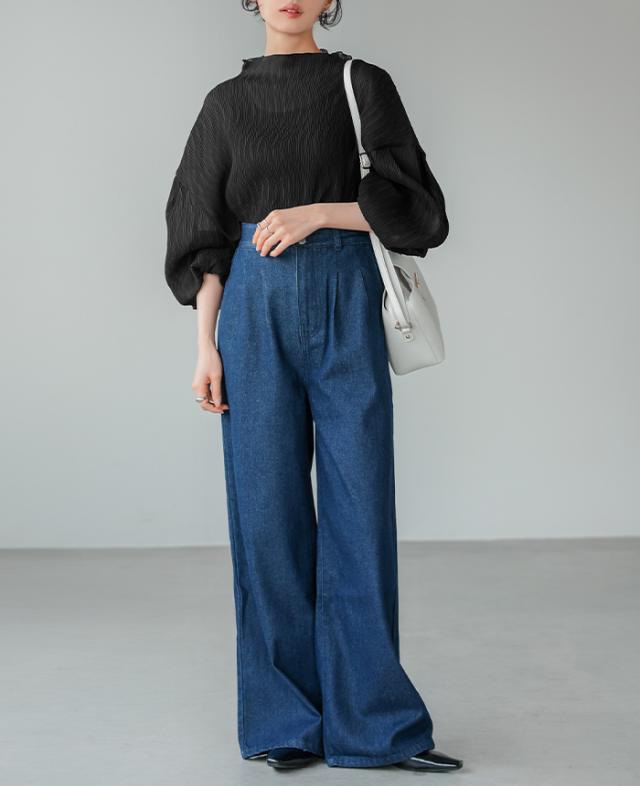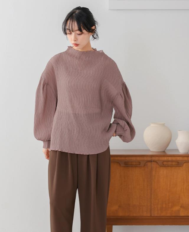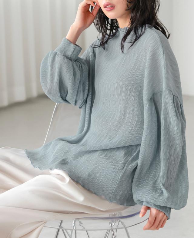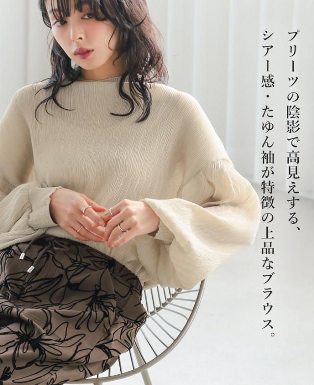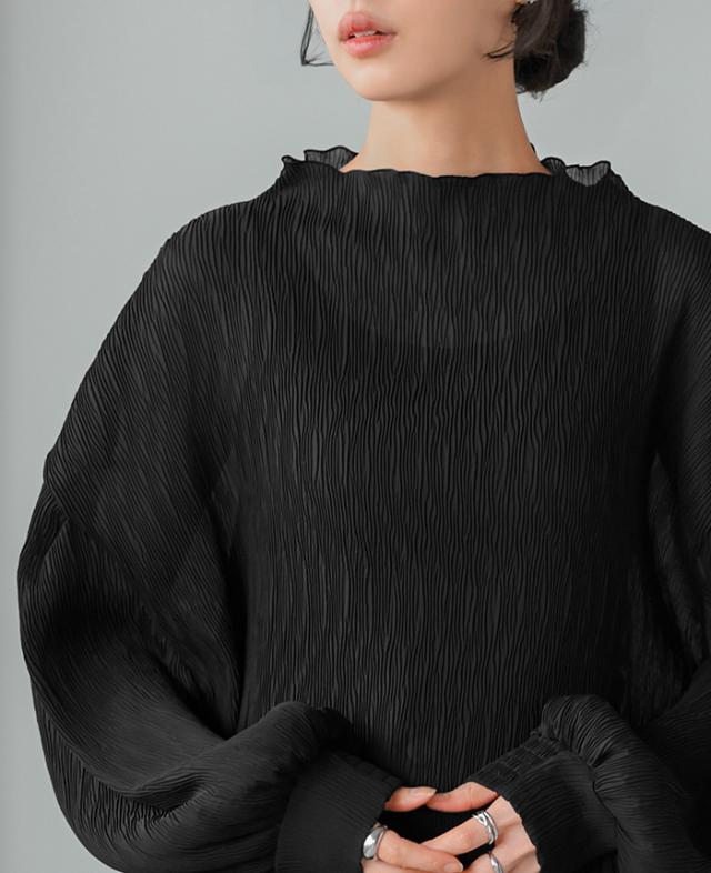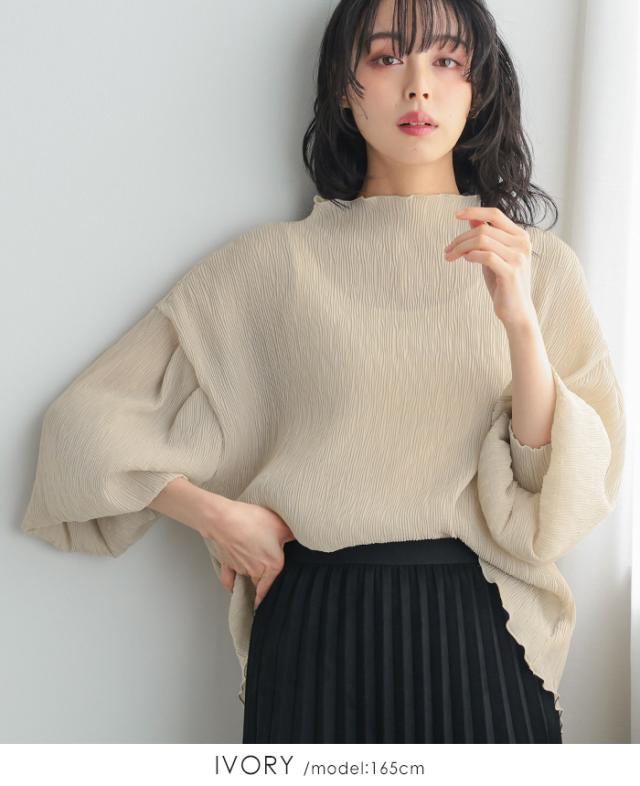 [新作限定P10%×メール便で送料無料]ランダムプリーツボトルネックトップス★-【メール便1点まで】[M便 1/1]