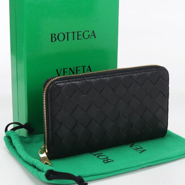 中古良品BOTTEGA VENETA ボッテガ・ヴェネタ 長財布ラウンドファスナー ジップアラウンドウォレット イントレチャート メンズ ブラック