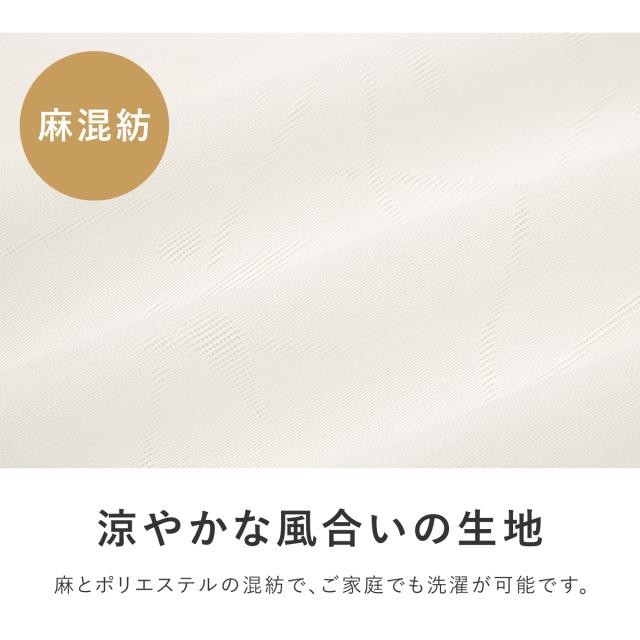 生地は涼やかな風合いの麻とポリエステルの混紡で、ご家庭でも洗濯が可能です。