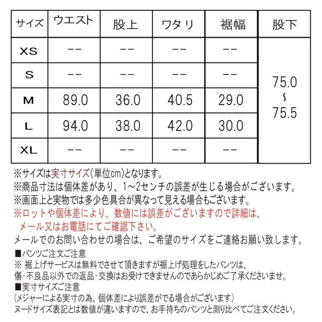 ※ 裾上げサービスは無料でさせて頂きますが裾上げ処理をしたパンツは、