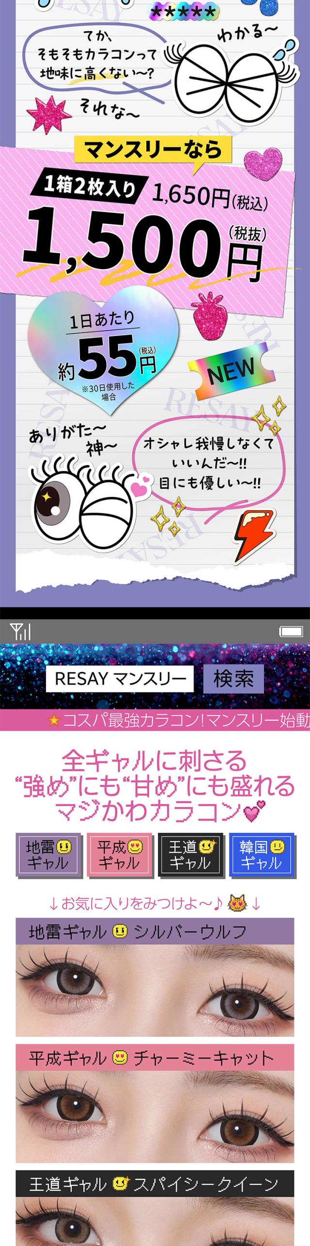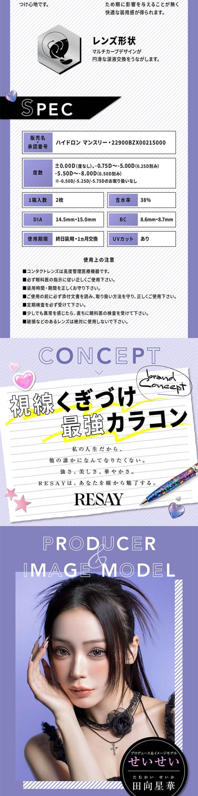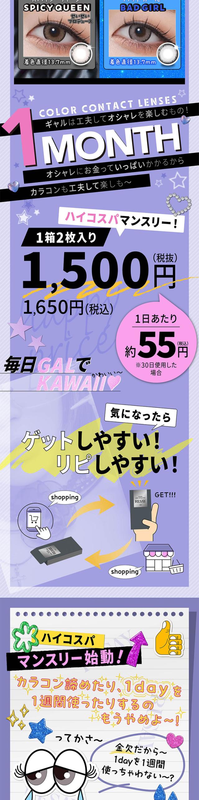 ★ポイント20%還元★New新登場★ せいせい カラコン★ リセイ マンスリー 2枚×2箱セット ◆ 1month 1ヶ月 度あり 度なし カラコン 田向 星華 せいせい りせい からこん 韓国 ギャル スパイシークイーン バッドガール シルバーウルフ チャーミーキャット◆