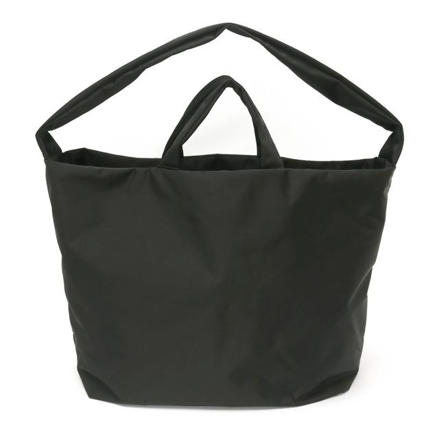 ステッチレスのすっきりとしたデザインと、軽く上品な素材感が特徴的なトートバッグ。手持ちと肩掛けのどちらでも使える2WAY仕様になっています。
