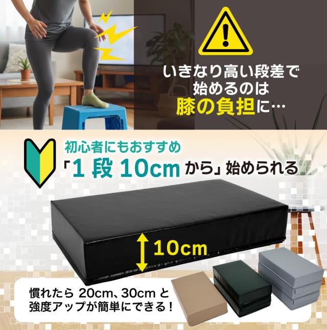 【レベルに合わせて成長する踏み台】1段10cmから始められるジョイント式踏み台。運動に慣れてきたら段を追加するだけで負荷を調整。低い段差から始められるので、運動が久しぶりの方や初心者でも、自分のペースで無理なくレベルアップできます。