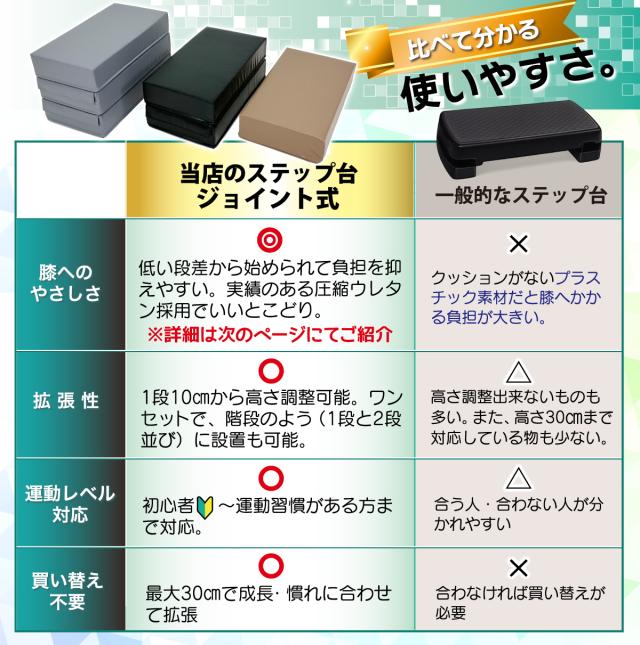 初心者〜OK!子供から運動不足の大人、リハビリまでレベルに合わせて拡張できるジョイントタイプの踏み台です!硬くないので身体への負担も少なく始められます。