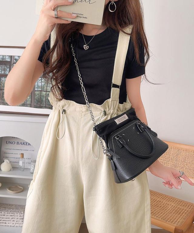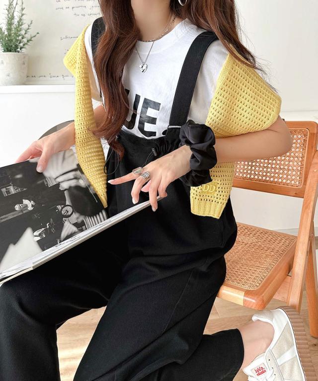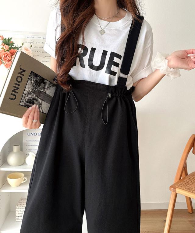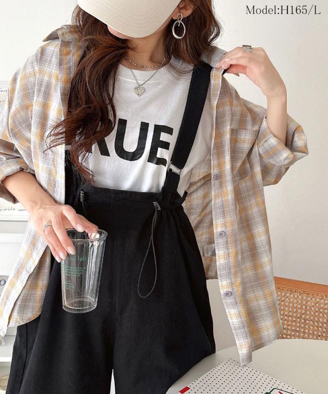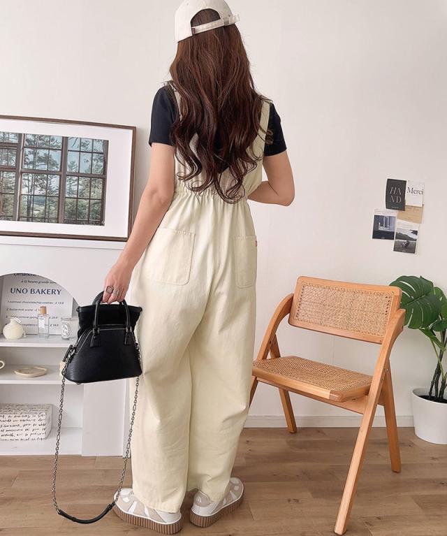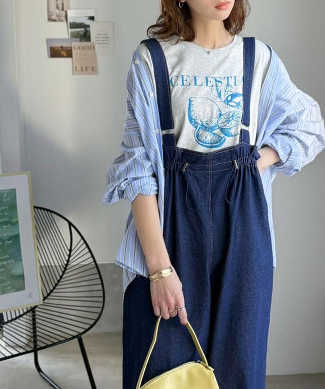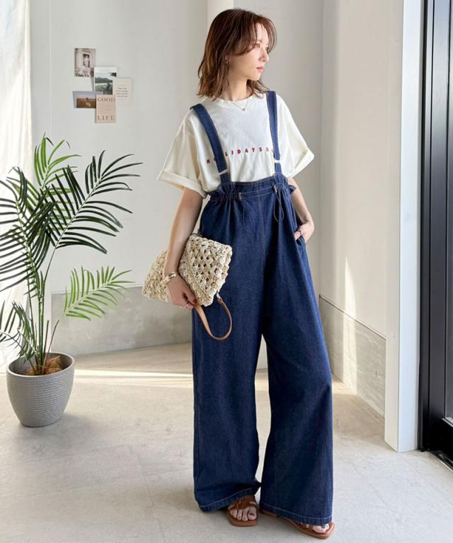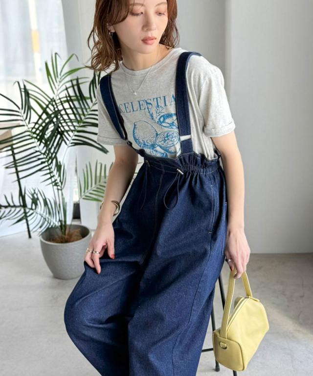 一般的なデニムオーバーオールよりもすっきりとした印象で、大人っぽく着用できる一枚。