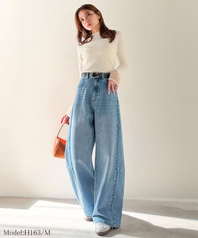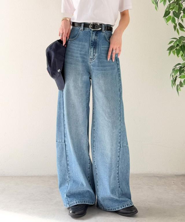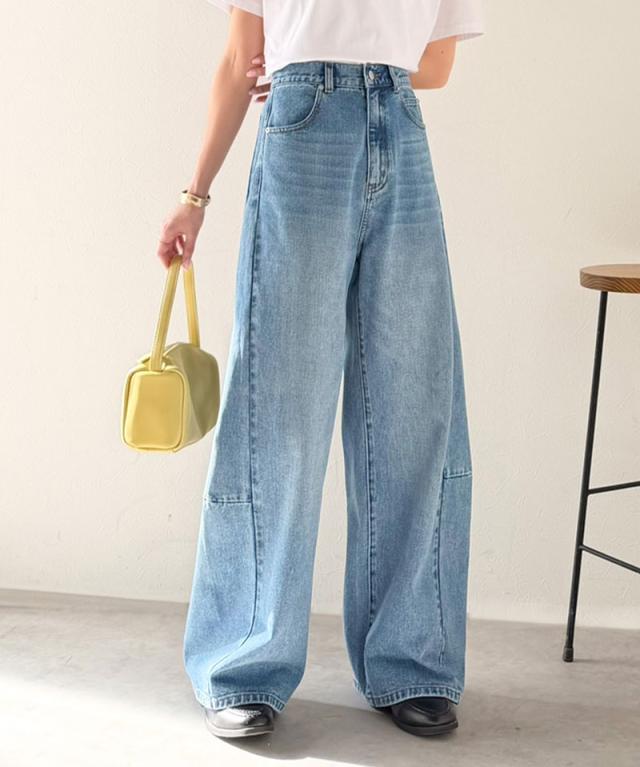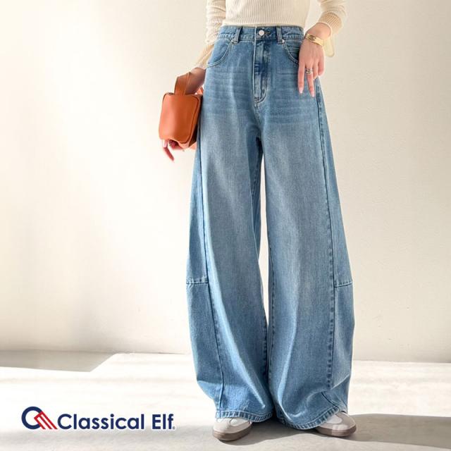 クラシカルエルフ春新作 楽ちん♪ ウエスト ゴム 入り デニムパンツ レディース 大きいサイズ ボトムス パンツ カーブライン 美脚見え 抜け感 ハイウエスト スタイルアップ ポケット付き ユーズド感 脚長 履き心地抜群 2026ss ce0900016