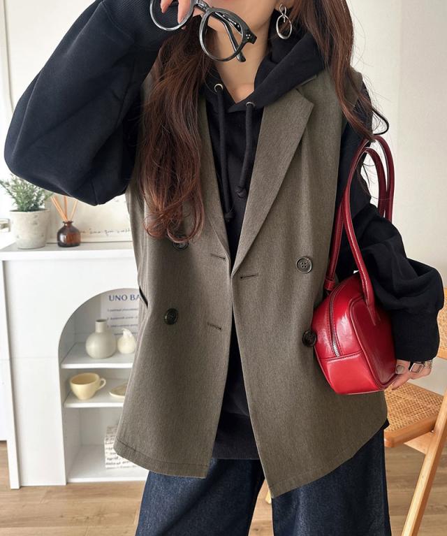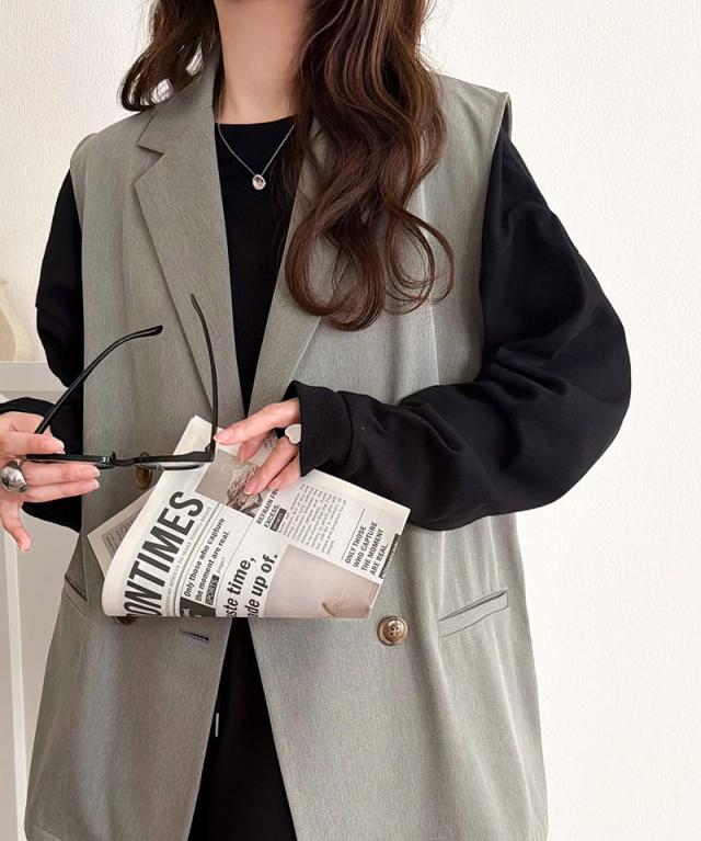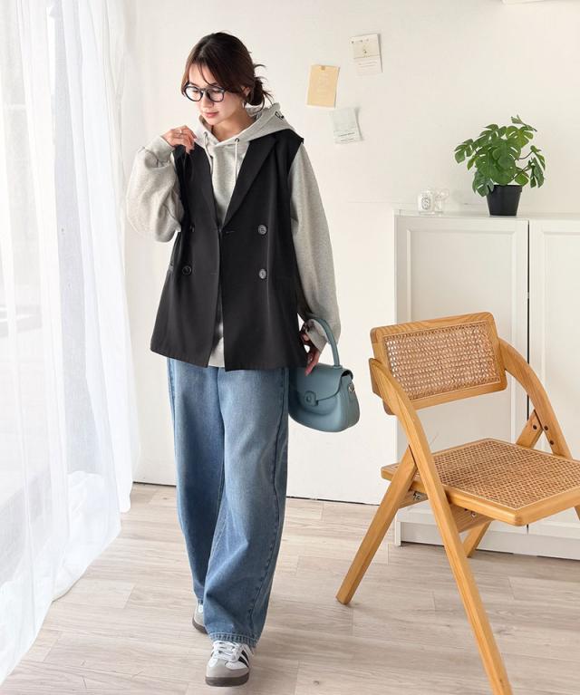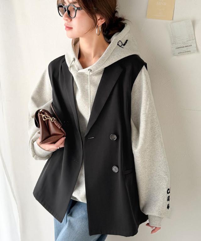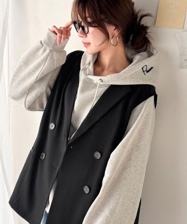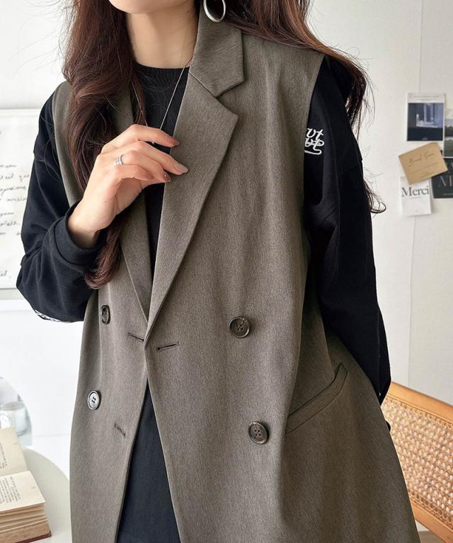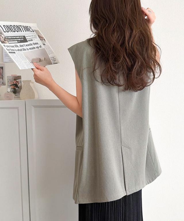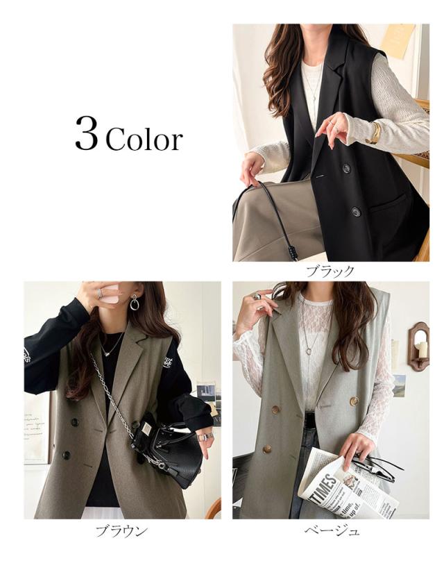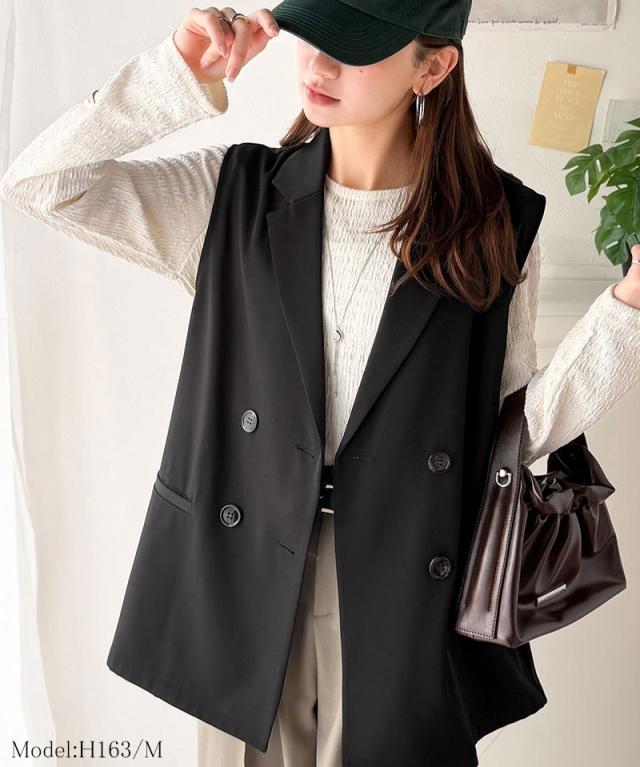 クラシカルエルフ春新作 ベスト レディース おしゃれ トップス ジレ 上品 ダブルジャケット セレモニー 羽織る こなれ感 軽量 おしゃれ ウエストカバー ミディアム丈 ストレッチ 万能アイテム 大きいサイズ 2026ss ce1025008