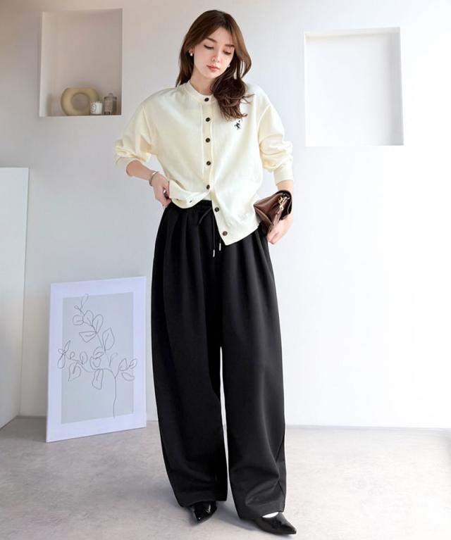 クラシカルエルフ春新作 ボトムス パンツ レディース オーバーサイズ 2タック イージーパンツ ワイド ダンボール素材 お洒落 キレイ見え ラク きちんと感 スタイルアップ デイリー ヒップゆったり リラックス 大きいサイズ 2026ss ce1290004