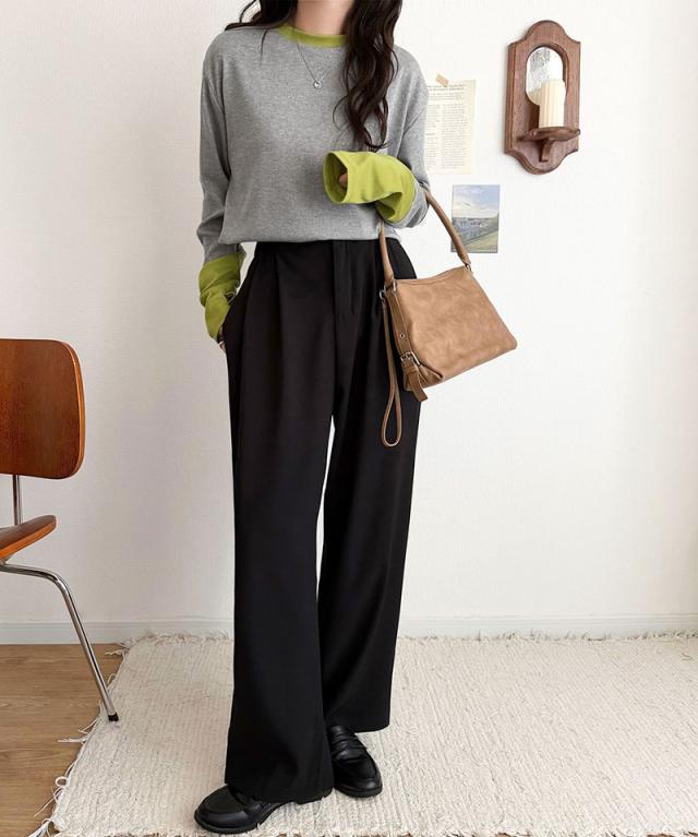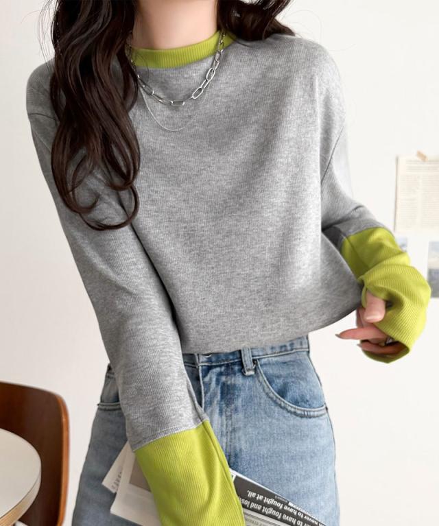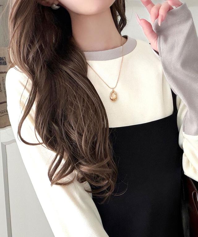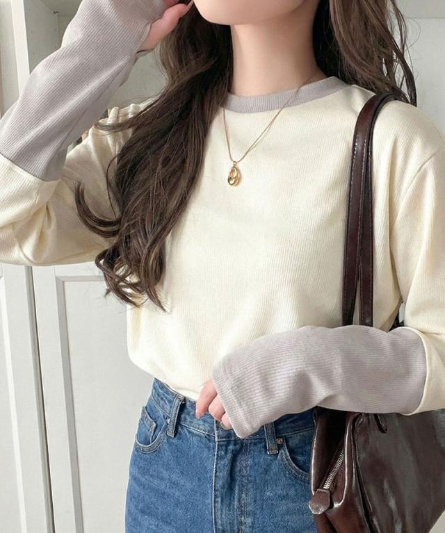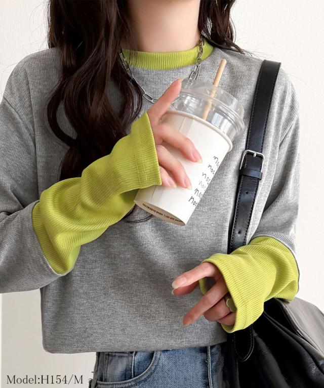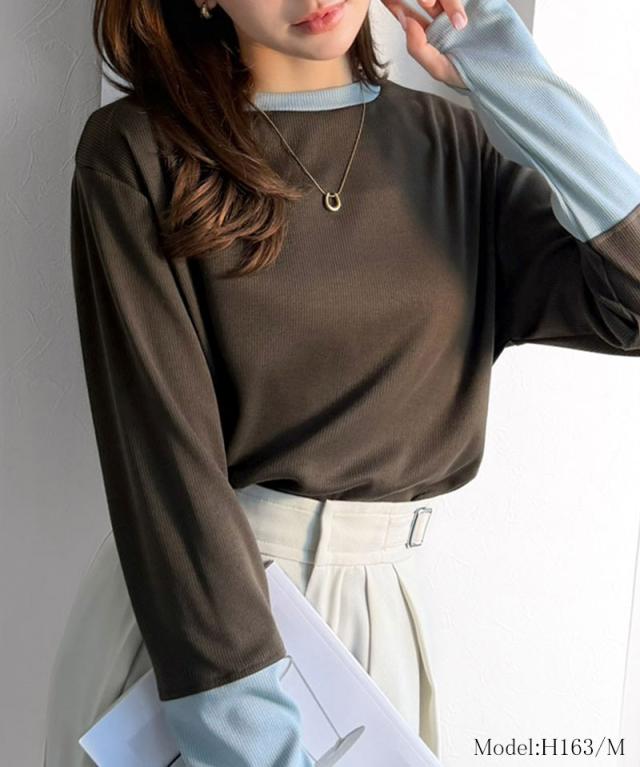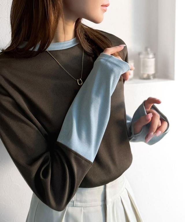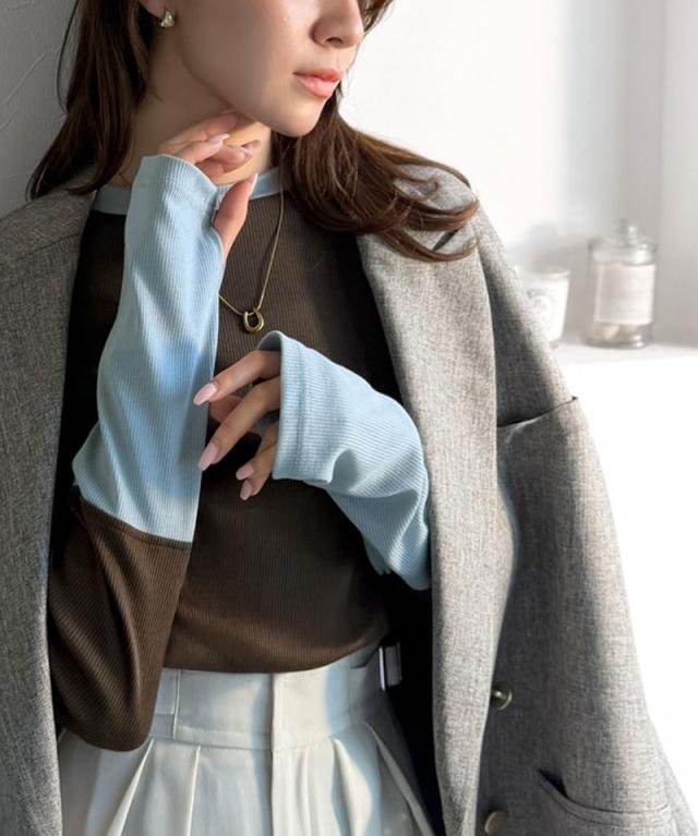 クラシカルエルフ春新作 トップス ニット レディース 袖配色切り替え リブニット プルオーバー 長袖 指穴付き レイヤード 重ね着 伸縮性 テレコリブニット素材 フィット感 華奢見え きれいめ カジュアル 大きいサイズ 2026ss ce1330082