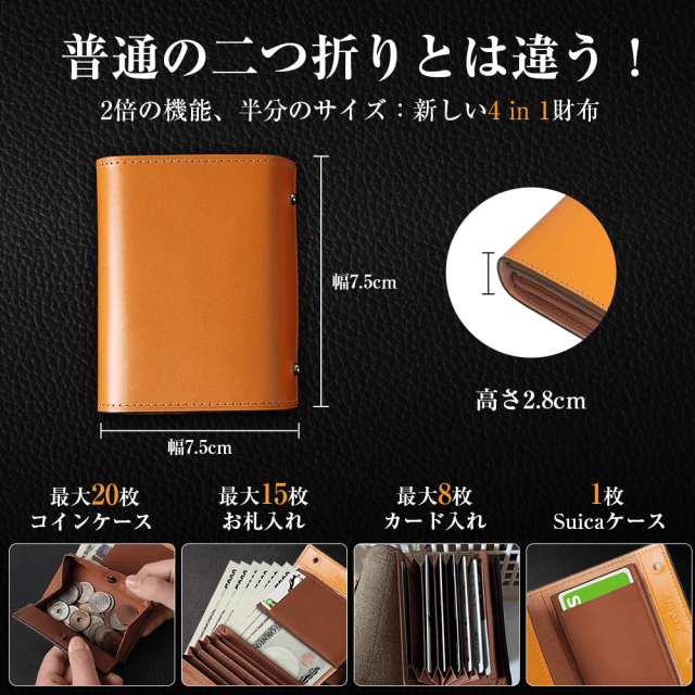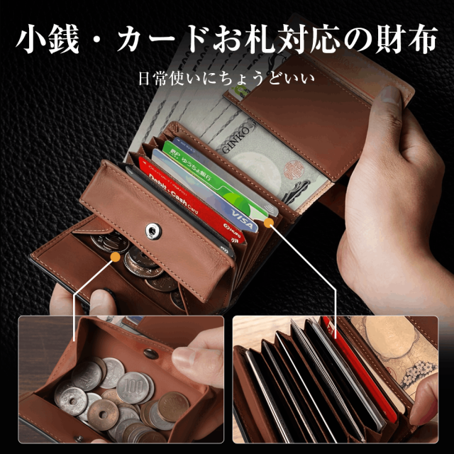 財布 栃木レザー 本革 ミニ財布 牛革 4in1 小銭入れ 革製品 コンパクト 紳士用 男女兼用 wallet 収納力アップ ギフト プレゼント