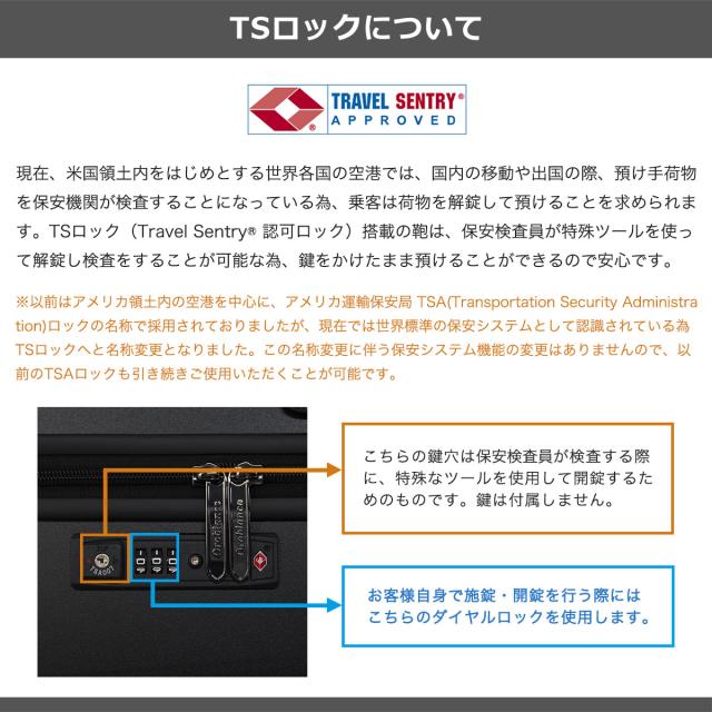 ・エキスパンダブル機能付きの製品は、マチ拡張時の3辺の和が機内持ち込みサイズ、預け入れ無料サイズを超える場合がございます。また、航空会社や飛行機の機種などによって規定が異なりますので、予めご確認の上お求めください。