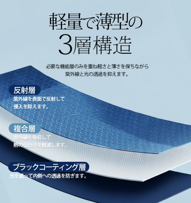 完全遮光仕様で紫外線対策に適しており、遮熱効果により暑い季節も快適に使用できます。