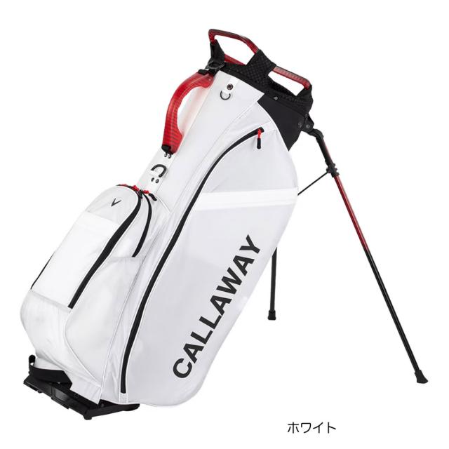 シンプルなデザインと機能性を求めるゴルファーへ向けた軽量スタンドモデル。重さは2.4kgと軽量。口枠は9.0型を採用し、クラブの出し入れがしやすい5分割仕様。全体の印象はシンプルなデザインながら口枠とハンドルにクリアパーツを使用することでモダンな印象に。ポケットは合計4個。フロントポケットは2個。ダース箱が入る大きめポケットとスモールポケット。ファスナーポケットと連動したスナップポケットがあり、ファスナーを開けずにグッズへアクセス可能。右サイドは大容量のファスナーポケットとスナップポケット(独立型)。左サイドは、ミドルサイズのポケットを配置。軽量で強度があるナイロン素材を採用。