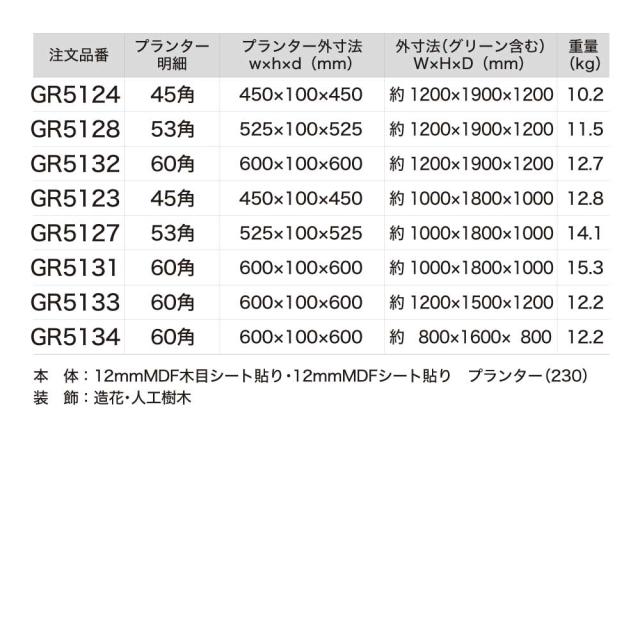 ※グリーンは造花の為、屋内設置でも直射日光や高温により、変色劣化する場合がございます。