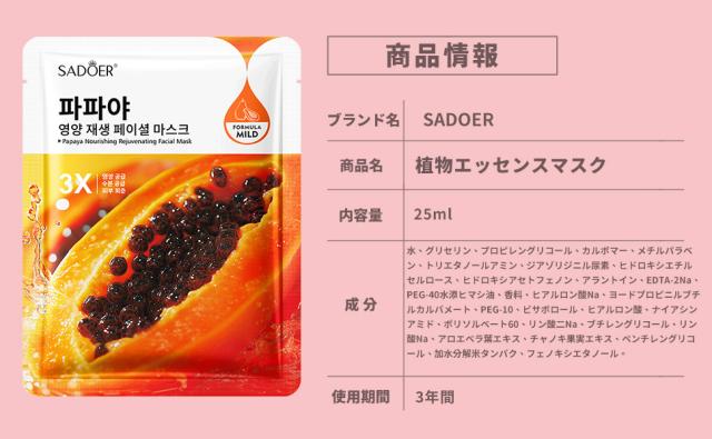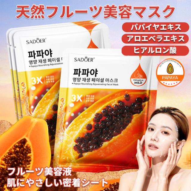 [12枚セット]天然フルーツフェイスマスク 個包装、保湿パック 個包装【パパイヤエキス】シートパック、ビタミン パック、フェイスパック、顔ぱっくマスク 人気、極薄シルク生地、肌にやさしい密着シート、シートマスク 個包装、ナイトパック、朝マスク