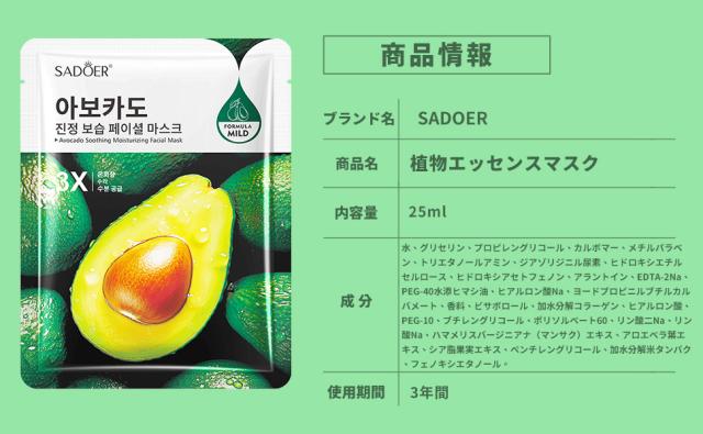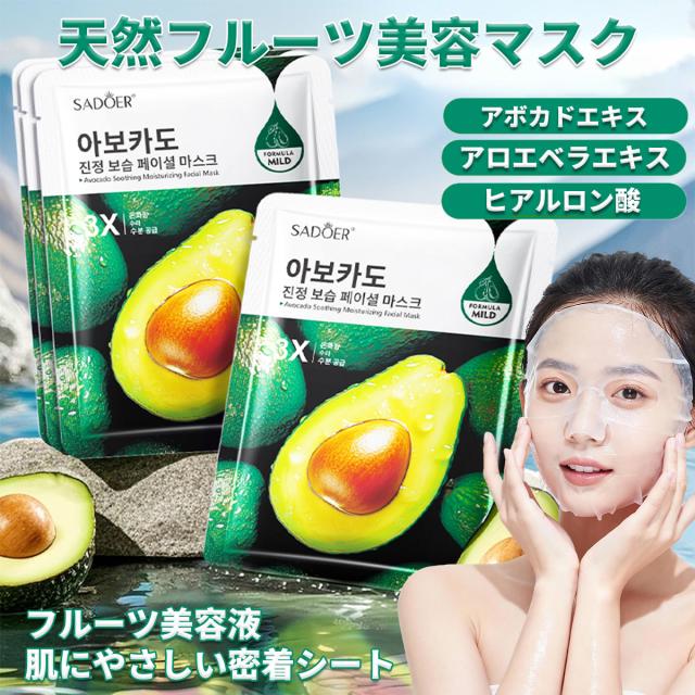 [12枚セット]天然フルーツフェイスマスク 個包装、保湿パック 個包装【アボカドエキス】シートパック、ビタミン パック、フェイスパック、顔ぱっくマスク 人気、極薄シルク生地、肌にやさしい密着シート、シートマスク 個包装、ナイトパック、朝マスク