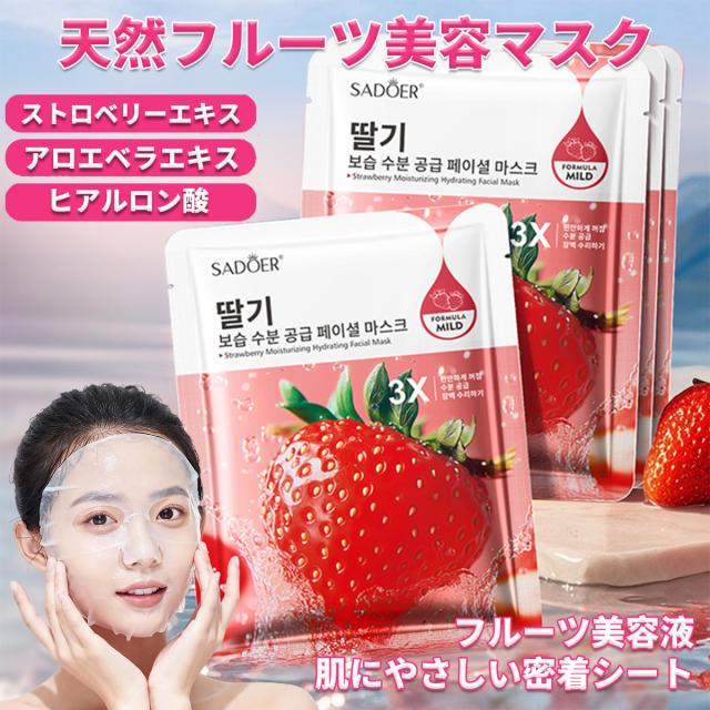 [12枚セット]天然フルーツフェイスマスク 個包装、保湿パック 個包装、【イチゴエキス】シートパック、ビタミン パック、フェイスパック、顔ぱっくマスク 人気、極薄シルク生地、肌にやさしい密着シート、シートマスク 個包装、ナイトパック、朝マスク