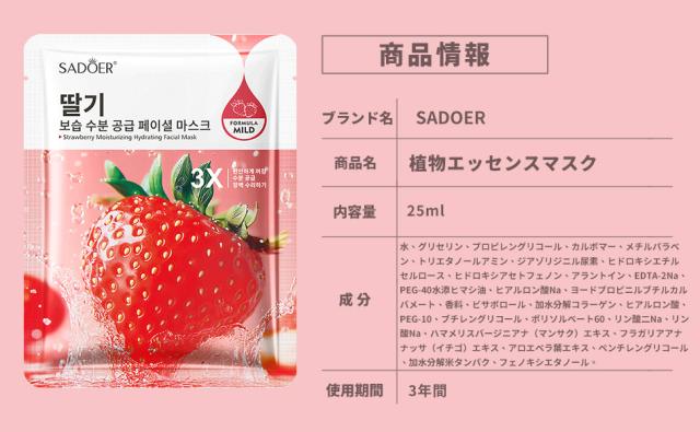 ◎【毎日 パック/美容パック】フルーツエッセンス美容液フェイスマスクです。このマスクはパラベン・鉱物油・エタノール・合成香料・合成着色料・紫外線吸収剤・シリコンを一切使用しておらず、敏感肌の方でも安心してご使用いただけます。やさしい処方で、肌トラブルを抱える方にもおすすめです。日常のスキンケアを簡単にできながら、必要な保湿と美肌ケアもしっかりと叶えます。