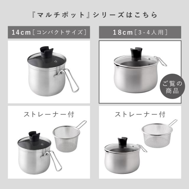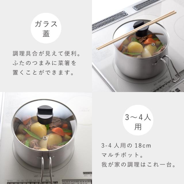 マルチポット ih,鍋 小さめ ステンレス,燕三条 鍋 ステンレス,逸品物創,マルチポット,鍋,ステンレス,ステンレス鍋,片手鍋,天ぷら鍋,揚げ物,ご飯が炊ける,ご飯,ごはん,深型,小さめ,コンパクト,省スペース,18cm,ih,IH対応,ガス火,蓋付き,ふた付き,フタ付き,ガラス蓋,燕三条,日本製,調理器具,調理,料理,高級,高級感,清潔,衛生的,汚れが落ちやすい,洗いやすい,乾きやすい,錆びにくい,サビにくい,丈夫,上質,高品質,キッチン,台所,なべ,ナベ,煮る,沸かす,茹でる,炒める,炊く,揚げる,和える,保存,