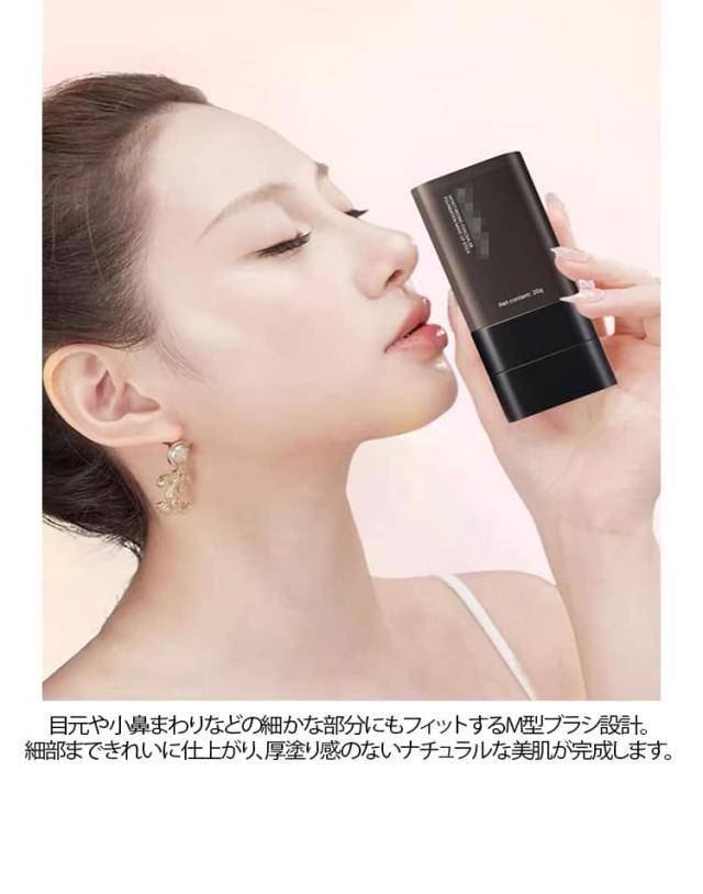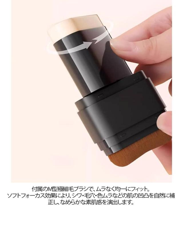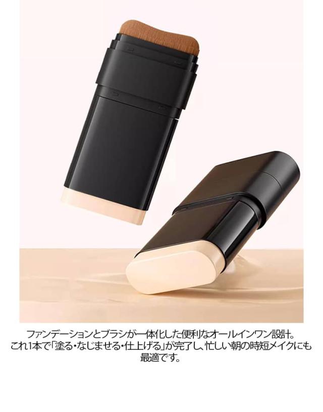 2本セット スティックファンデーション 極細毛ブラシ付き 手が汚れない スティックファンデ 2in1 毛穴カバー 崩れない 時短 メイク 韓国コスメ 高密着 保湿 ツヤ肌 携帯用 コンシーラー 化粧下地 ナチュラル アイボリー 2色 ムラなし