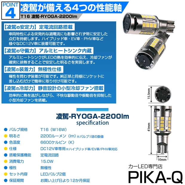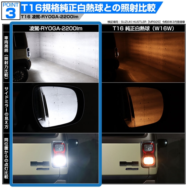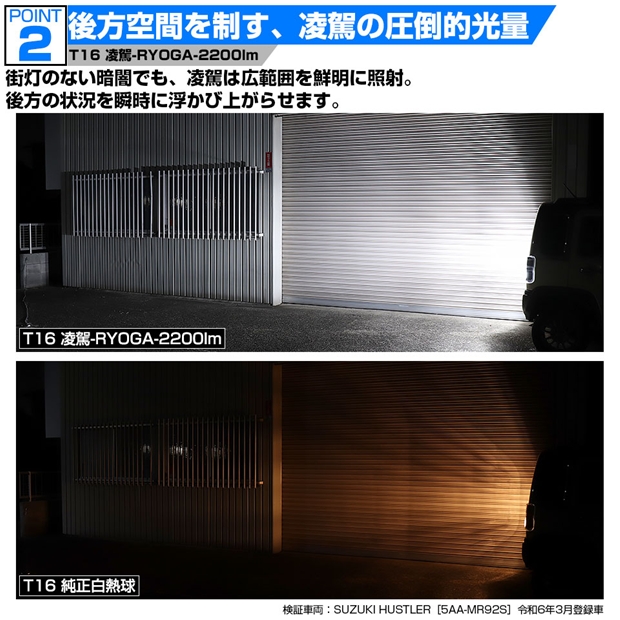 スズキ ハスラー (MR52S/MR92S) 対応 T16 led バックランプ 爆光 バルブ 凌駕-RYOGA- 2200lm ホワイト 6600K 2個 後退灯 11-I-24