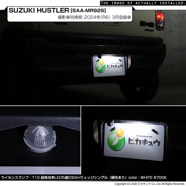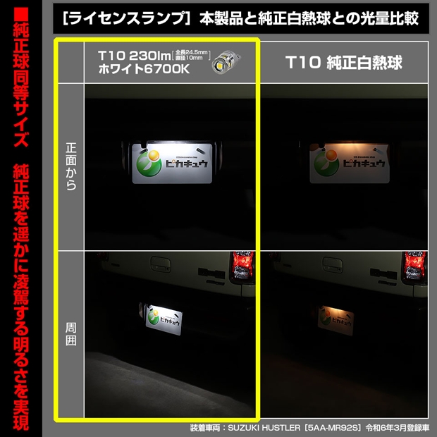 ピカキュウ,LED専門店,LEDバルブ,国産DC12V車,ハイブリッド車対応LEDバルブ,T10,W5W,純正球同等サイズ,24.5mm,ライセンスランプ,ルームランプ,全光束230lm,T10純正球の4倍以上の明るさ,18ヶ月保証,SUZUKI,スズキ,HUSTLER,ハスラー,MR52S,MR92S,1型,2型,3型