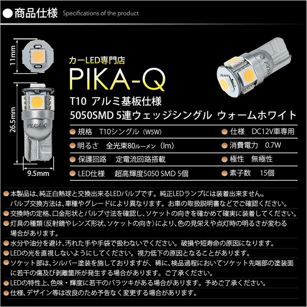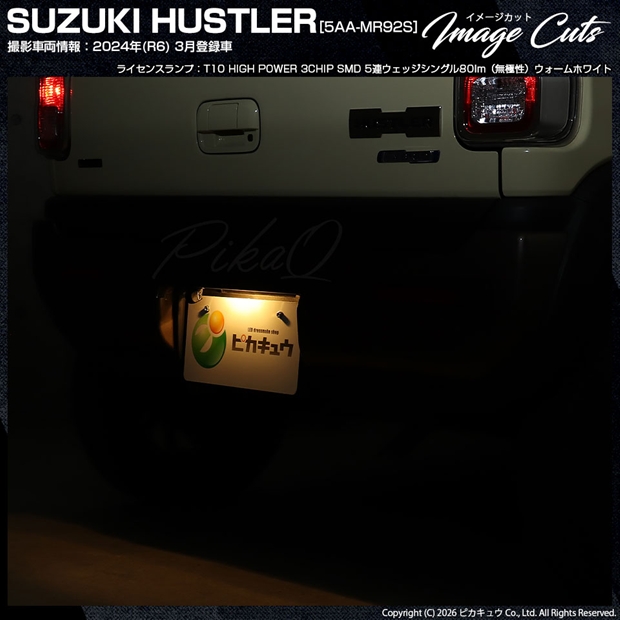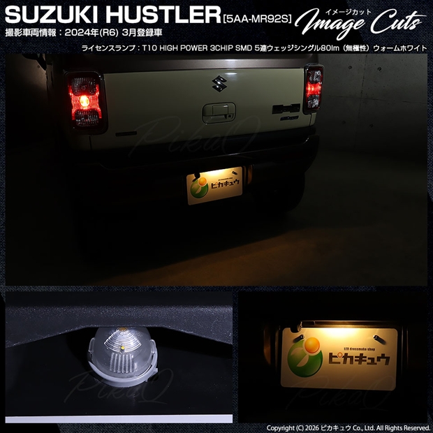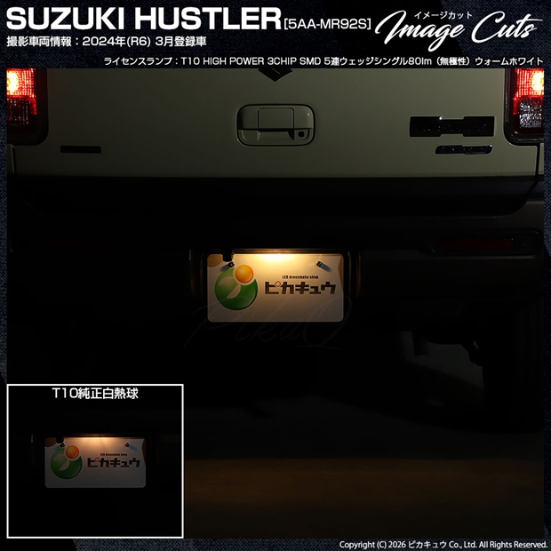 ピカキュウ,LED専門店,LEDバルブ,LED,SMD,T10,W5W,T10 HIGH POWER 3CHIP SMD 5連ウェッジシングル球,ウォームホワイト(電球色),ライセンスランプ,番号灯,SUZUKI,スズキ,HUSTLER,ハスラー,MR52S,MR92S,1型,2型,3型