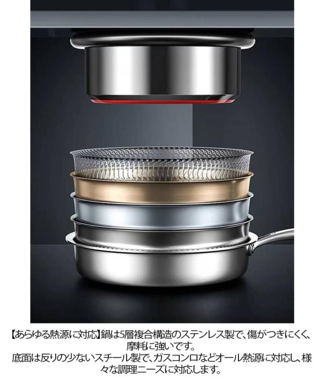 【送料無料】ステンレスフライパン フライパン 熱源対応 フライパン24cm オムレツ 32cm 28cm くっつかない 30cm 軽量 対応 体に害のないフライパン マーブルコート高熱効率 5層複合構造 目玉焼き 餃子鍋 焦げ付かない オール フライパン 鍋のふた 家庭用 キッチン