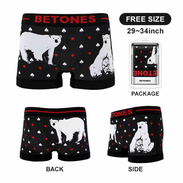 BETONES ビトーンズ ボクサーパンツ メンズ 下着 アンダーウェア 男性 パンツ フリーサイズ 伸縮性 シームレス タグなし 履き心地 良い 速乾 派手 無地 柄 デザイン おしゃれ かっこいい インナー 大人 紳士 彼氏 旦那 夫 誕生日 プレゼント 父の日 バレンタイン ギフト