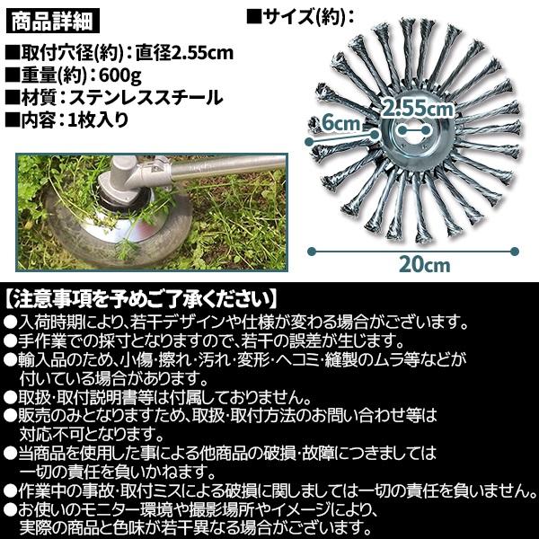 草刈り機 ブラシ カッター 1個 20cm 替刃 草削り 草刈機 芝刈り機 スチール ワイヤー 交換 刃 汎用 アスファルト 苔 雑草 除去 サビ取り 庭 ガーデニング お手入れ