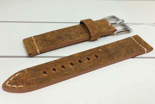 しっかりとした厚めの革に、表面をヌバック素材で加工したストレートタイプの時計ベルトです。