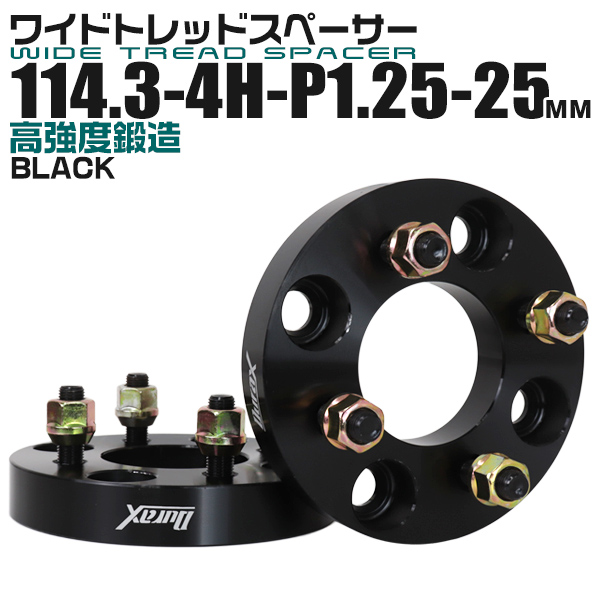 Durax ワイドトレッドスペーサー 2枚セット 25mm PCD114.3 4H P1.25 ブラック ワイトレ ホイール スペーサー ナット アルミ 高強度 軽量 耐腐食 耐摩耗 アルマイト表面処理 ワイドスペーサー 車 タイヤ 4ホール 4穴 人気 おすすめ 送料無料
