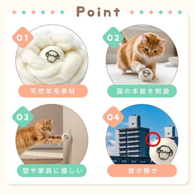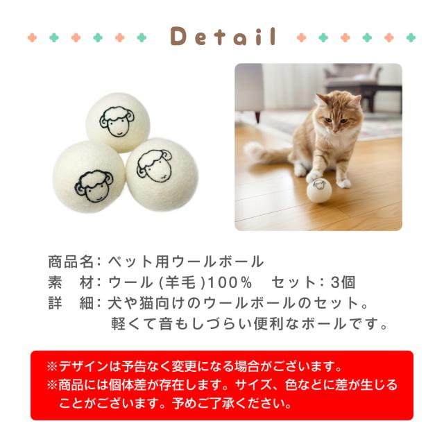 ペット用 ウールボール 3個セット|天然羊毛100%|静かで安心なおもちゃ