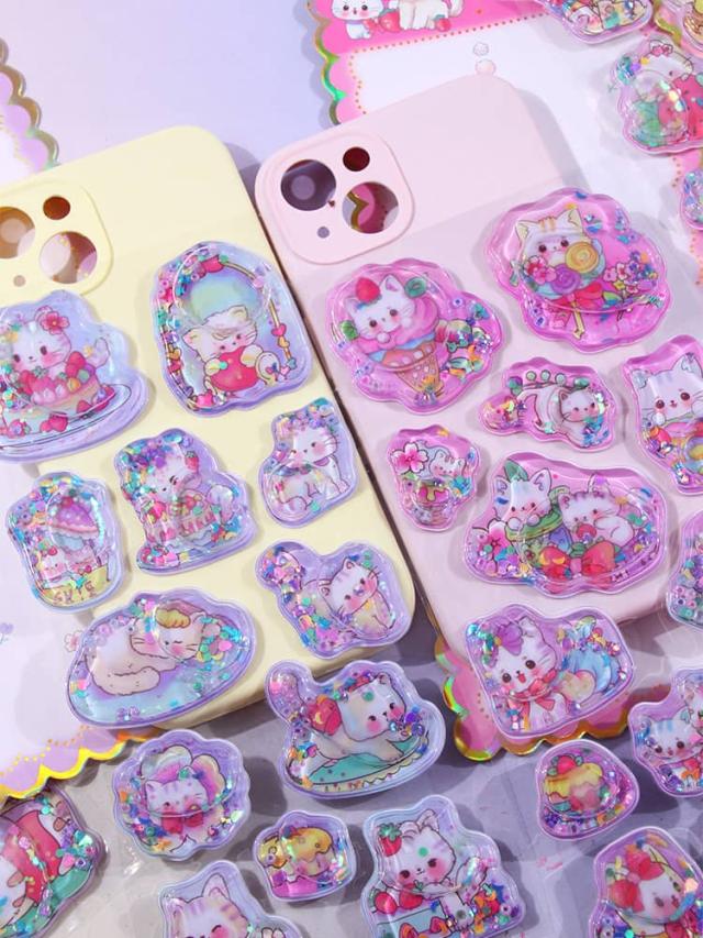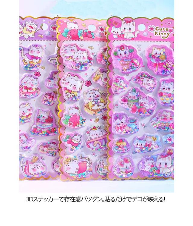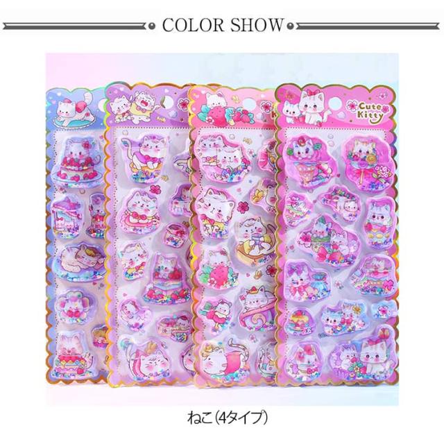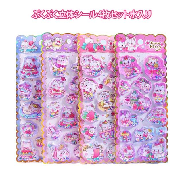 ウォーターシール ボンボン 3D まとめ買い 4枚 ドロップ SNS人気 かわいい シール ぷくぷく シール ねこ 女子 立体シール 交換 シール帳 4枚 アニマル デコ スマホケース ぷっくり 女の子 コレクション 子ども 入園祝い お正月 誕生日 ギフト