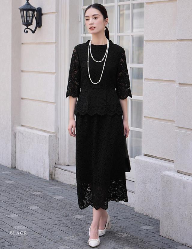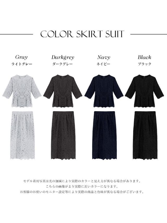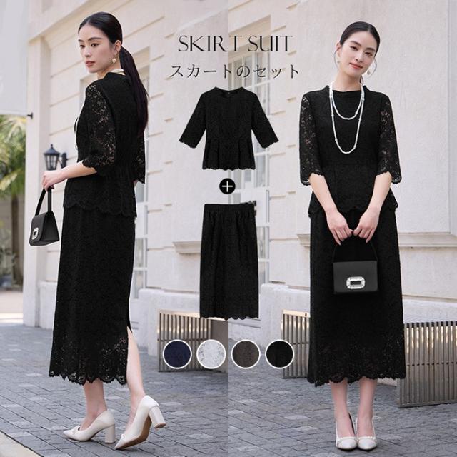 セットアップ レース ママスーツ レディース フォーマル 上下セット スカートスーツ 2点セット 長袖 トップス ミモレ丈 スカート 結婚式 披露宴 お呼ばれ 4色 S-2L 春 夏 秋