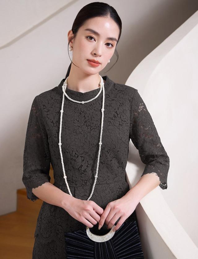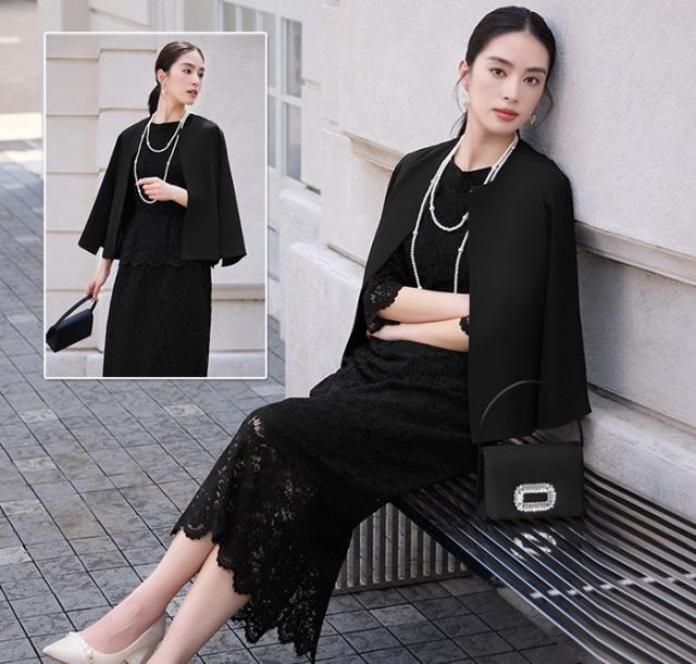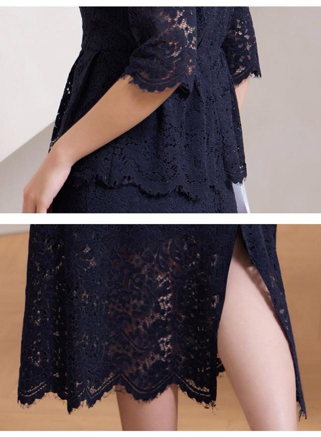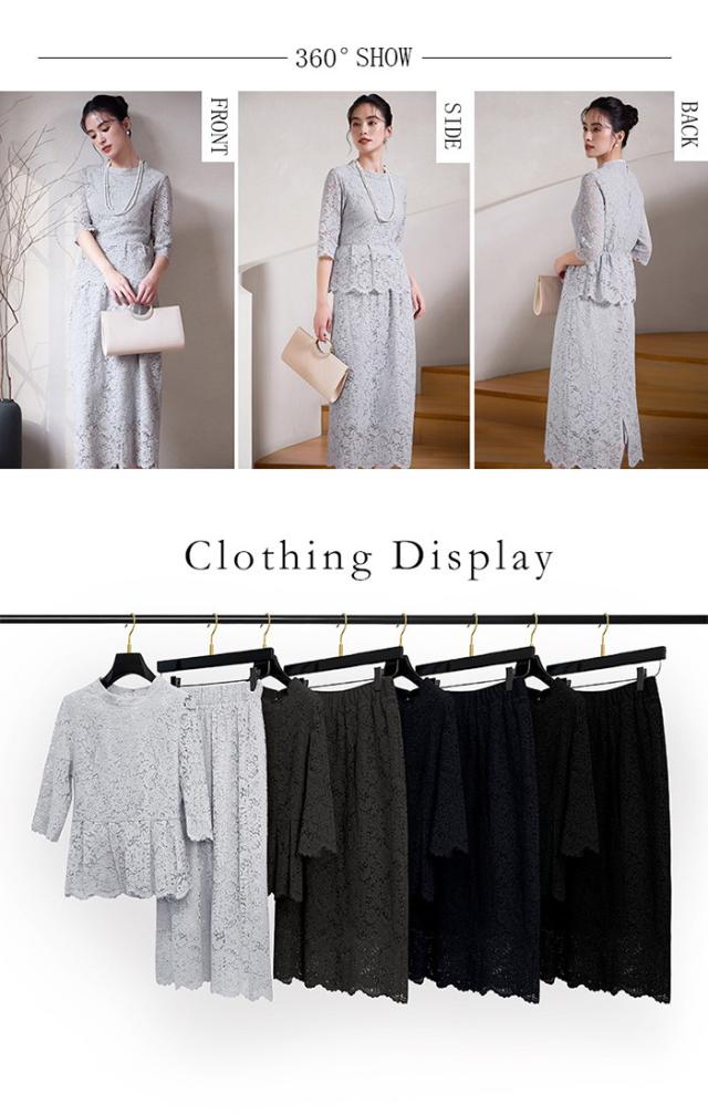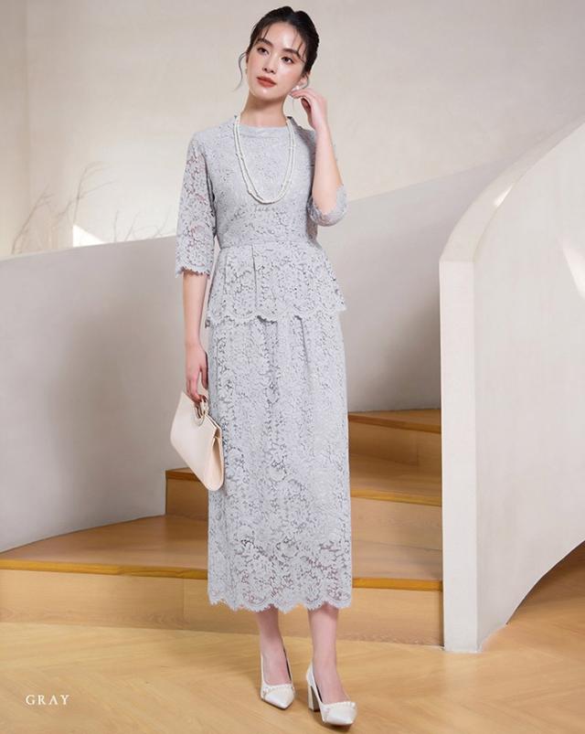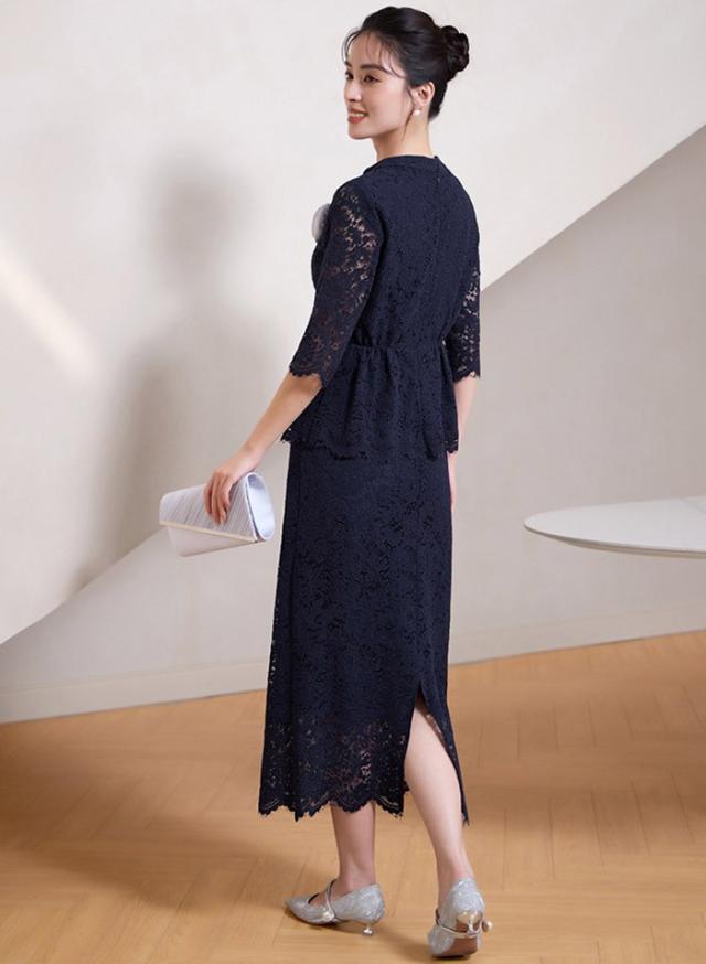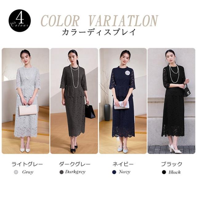 セットアップ レース ママスーツ レディース フォーマル 上下セット スカートスーツ 2点セット 長袖 トップス ミモレ丈 スカート 結婚式 披露宴 お呼ばれ 4色 S-2L 春 夏 秋 mb002n1n1ld