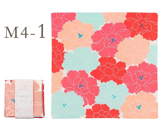 「むす美」【50ひめむすび Adeline Klam 】鶴 牡丹 桜 ふろしき 風呂敷 カラフル おしゃれ かわいい ハンカチ オーガニックコットン100% 約50cm 4タイプ お弁当包み ターコイズ ピンク ラベンダー 和小物
