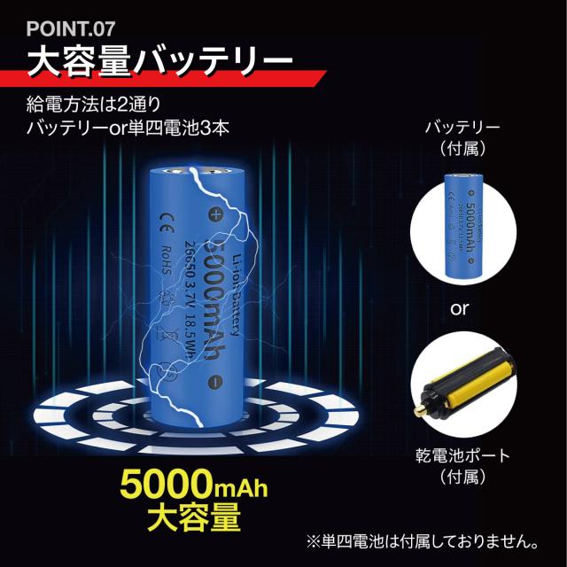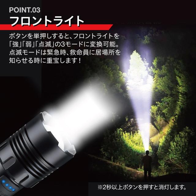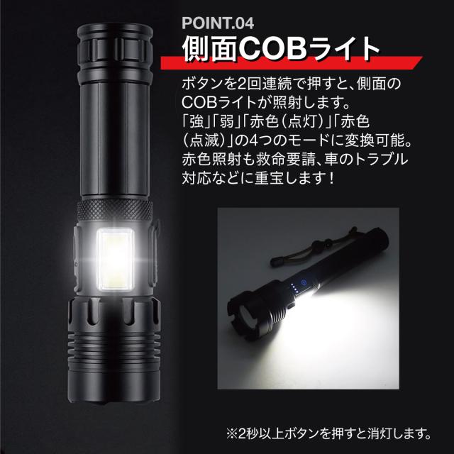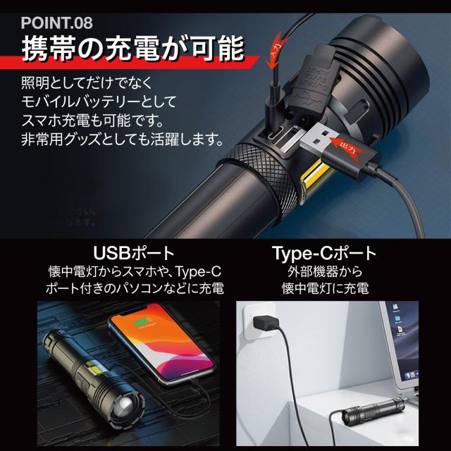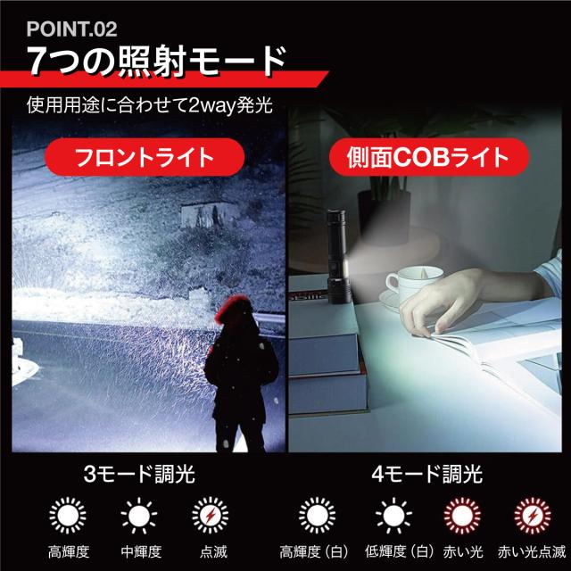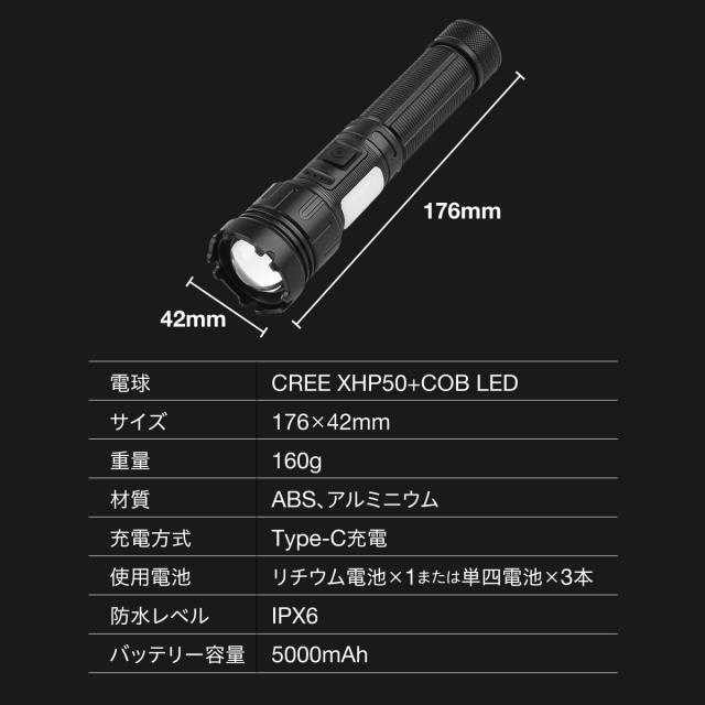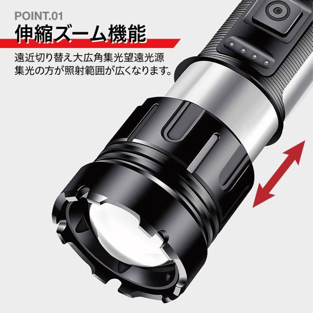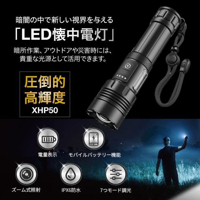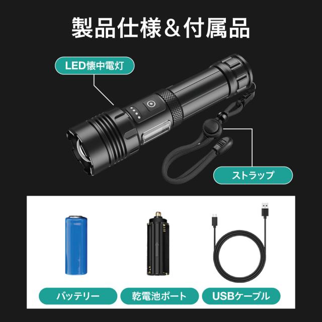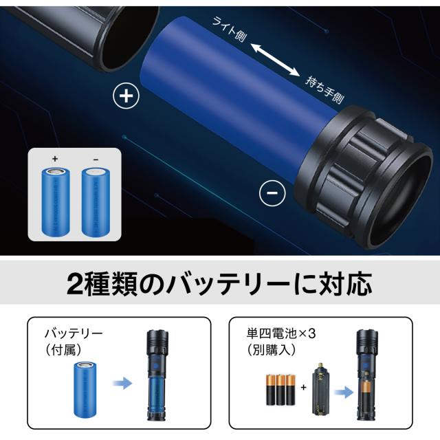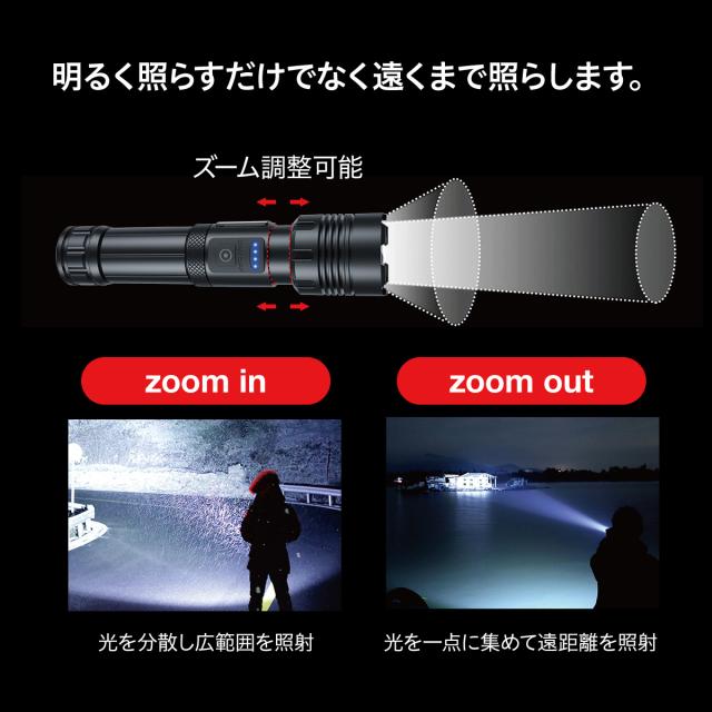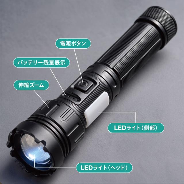 LED懐中電灯|電池式・充電式兼用|ズーム機能・7モード・IPX6防水防塵