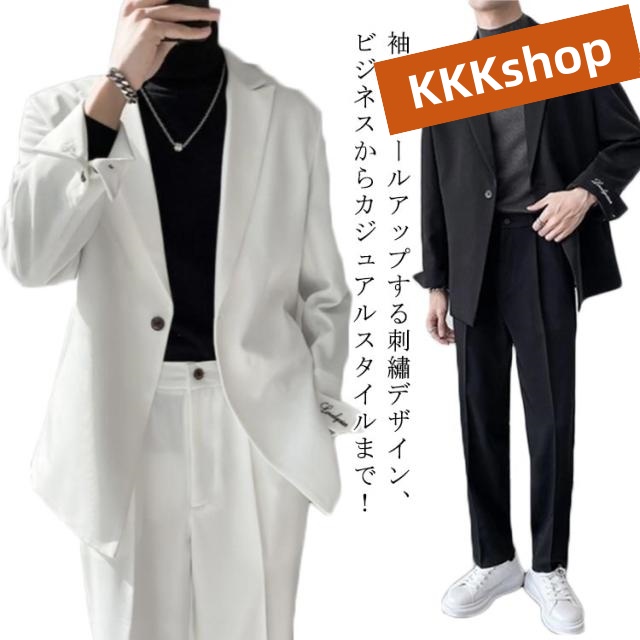 セットアップ メンズ スーツ カジュアルスーツ メンズ 上下 ジャケット パンツ ビジネス テーラードジャケット 袖口刺繍 春 夏 秋 オールシーズン おしゃれ 在宅ワーク 大きいサイズ カジュアル 韓国ファッション 洗える テレワーク