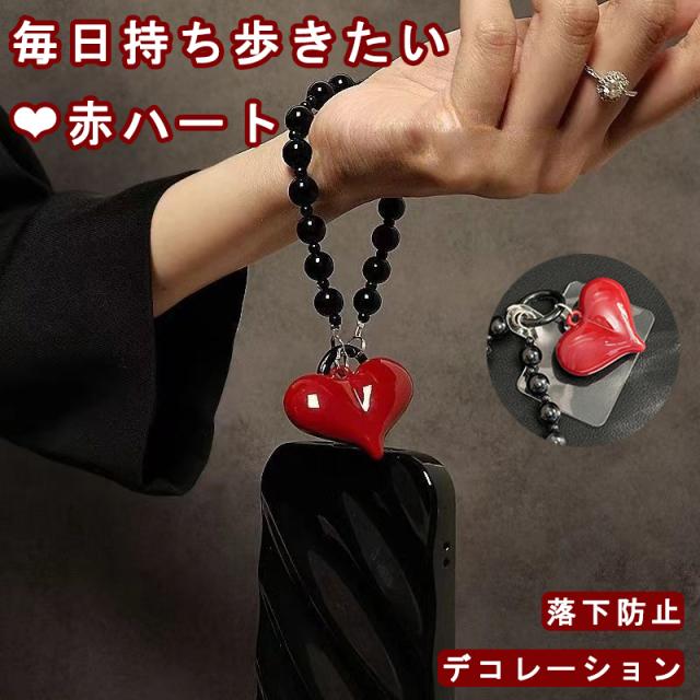 黒ビーズと愛らしいハートの融合 スマホ・鍵・バッグが即席おしゃれ小物に変身。