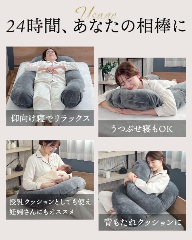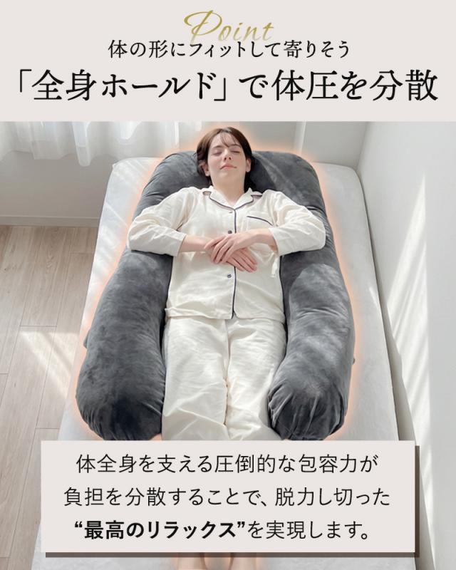 抱き枕 U字型 枕 ハグノア HUGNOA まくら 妊婦 授乳クッション マタニティ 快眠 安眠 安眠枕 体圧分散 腰痛 肩こり いびき防止 対策 背もたれ 特大 クッション ギフト プレゼント 出産祝い 母の日 誕生日 敬老の日 贈り物 洗えるカバー 高さ調整 ベロア ロング
