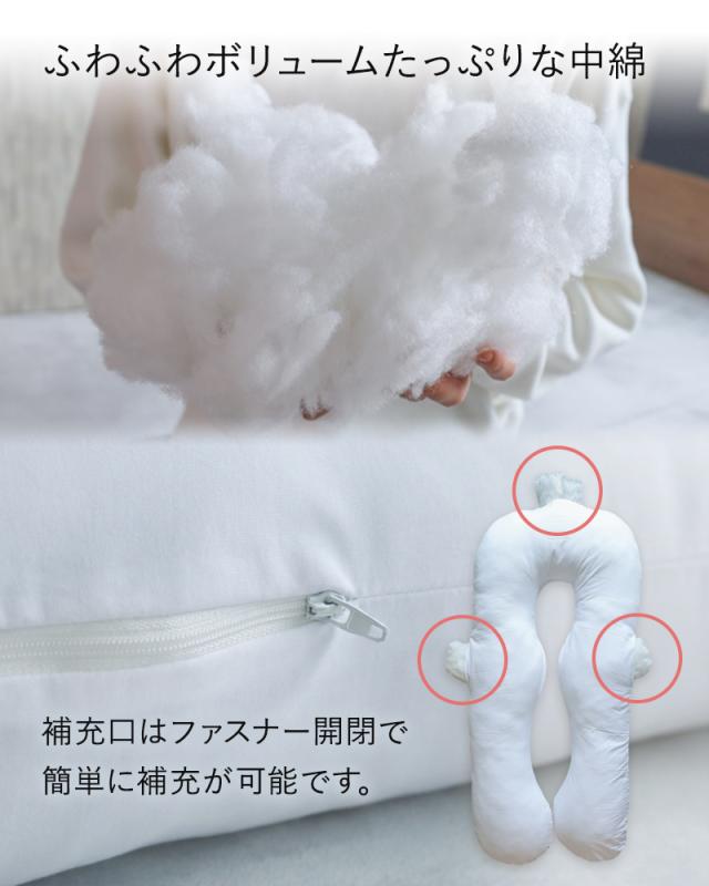 ■全身がとろける、無重力の解放感 左右の大きなクッションが、全身を優しくホールド。背中に支えがあるHUGNOA(ハグノア)だからこそできる仰向け、横向き、そして「斜め向き寝」まで、あらゆる姿勢で極上の癒やしを提供します。 ■「無段階」で叶える、あなただけのオーダーメイドな高さ調整。 サイドファスナーから中綿を自由に出し入れできる設計を採用。1cm単位でボリュームをコントロールできるため、体型や好みに合わせた「自分だけの正解」が作れます。既製品の枕では満足できなかった「枕難民」の方にこそ試してほしい、究極のカスタマイズ性です。 ■24時間、あなたの相棒に。寝室からリビングまで広がる心地よさ。 就寝時の快眠サポートはもちろん、ソファでの読書やスマホ操作の背もたれ、産後の授乳クッションとしても大活躍。大きく開くワイドファスナー設計でカバーの着脱も簡単。毎日使うものだからこそ、使いやすさと安全性に徹底的にこだわりました。 | ||