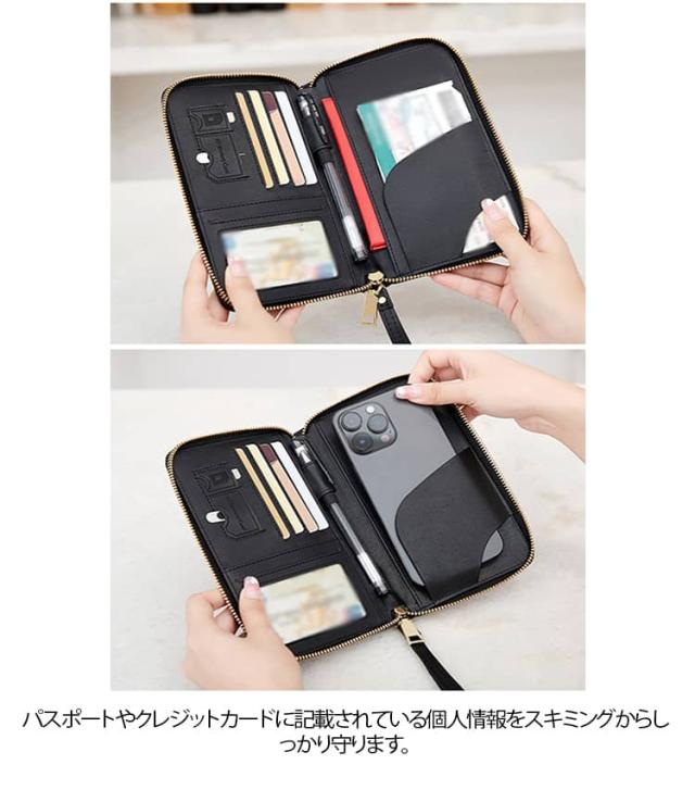 | スキミング防止素材を採用しているので安心して持ち歩きが可能。 パスポートやクレジットカードに記載されている個人情報をスキミングからしっかり守ります。 持ち歩きに便利なコンパクトサイズ、バッグに入れても邪魔にならず、持ち歩きにも便利。 多機能収納ポケット パスポートはもちろん、紙幣を収納できるポケットも設置し、 旅行に必要なアイテムをこれ1つにまとめることができます。 手触りが良いPUレザー製で水や汚れにも強い素材なのも嬉しいポイント♪ 旅行に必要なアイテムをこれ1つに収納可能です。 | |
