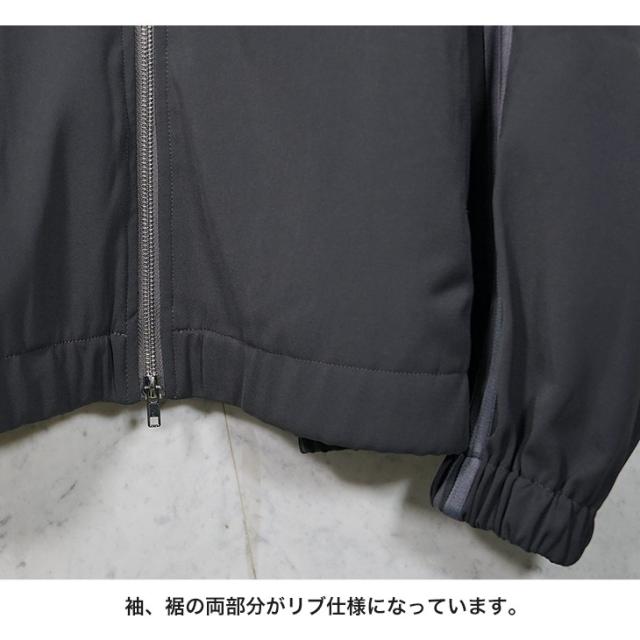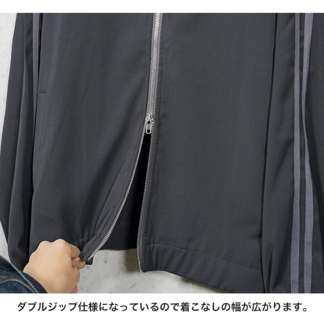 通常、ボディとラインの配色がはっきりしていることが多いトラックジャケットを、あえてボディに馴染む同系色の配色にすることで落ち着いた雰囲気と使いやすさにこだわったアイテムに。