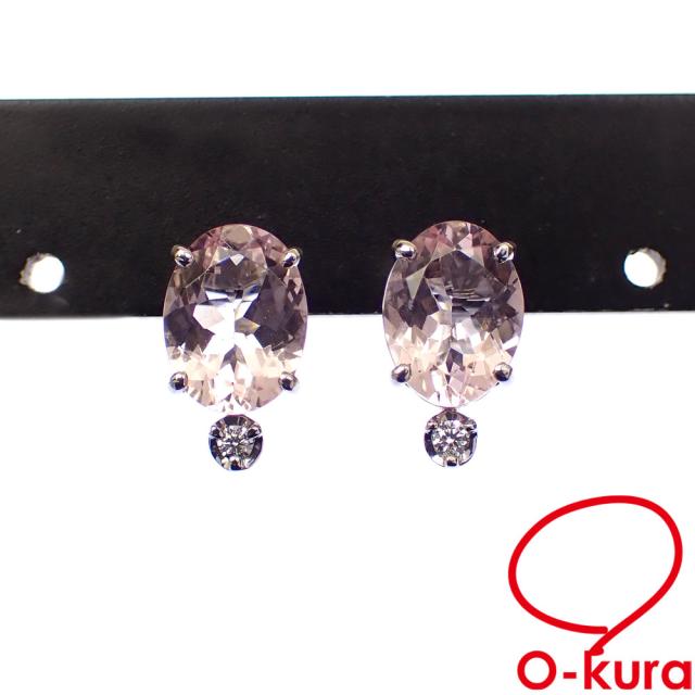 中古 モルガナイト ダイヤモンド ピアス レディース Pt900 Pt850 0.90ct/0.90ct/0.01ct/0.01ct 2.1g